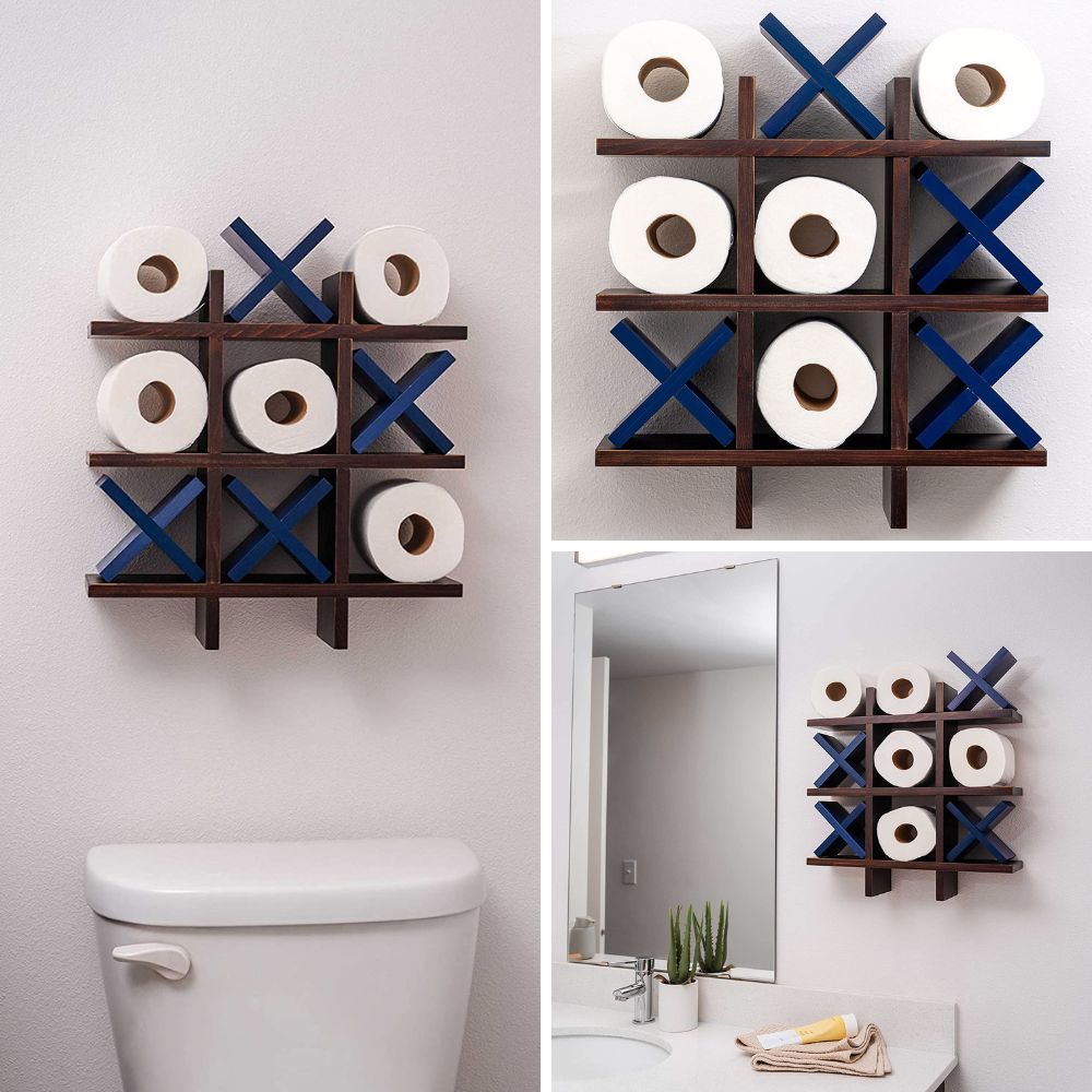Add a playful touch to your bathroom with a toilet paper holder in a tic tac toe design. This unique holder not only keeps your toilet paper easily accessible but also doubles as an entertaining game to keep guests amused. It's a functional and fun addition to your bathroom decor.