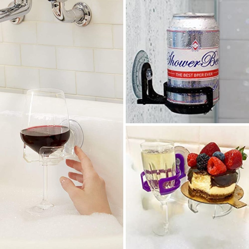 Elevate your bathing experience with the Original SipCaddy. This innovative device securely holds your favorite beverage, whether it's a glass of wine, a cold beer, or a refreshing drink, allowing you to enjoy a sip while relaxing in the tub or shower. It's designed to stick to any smooth surface, keeping your drink within reach.
