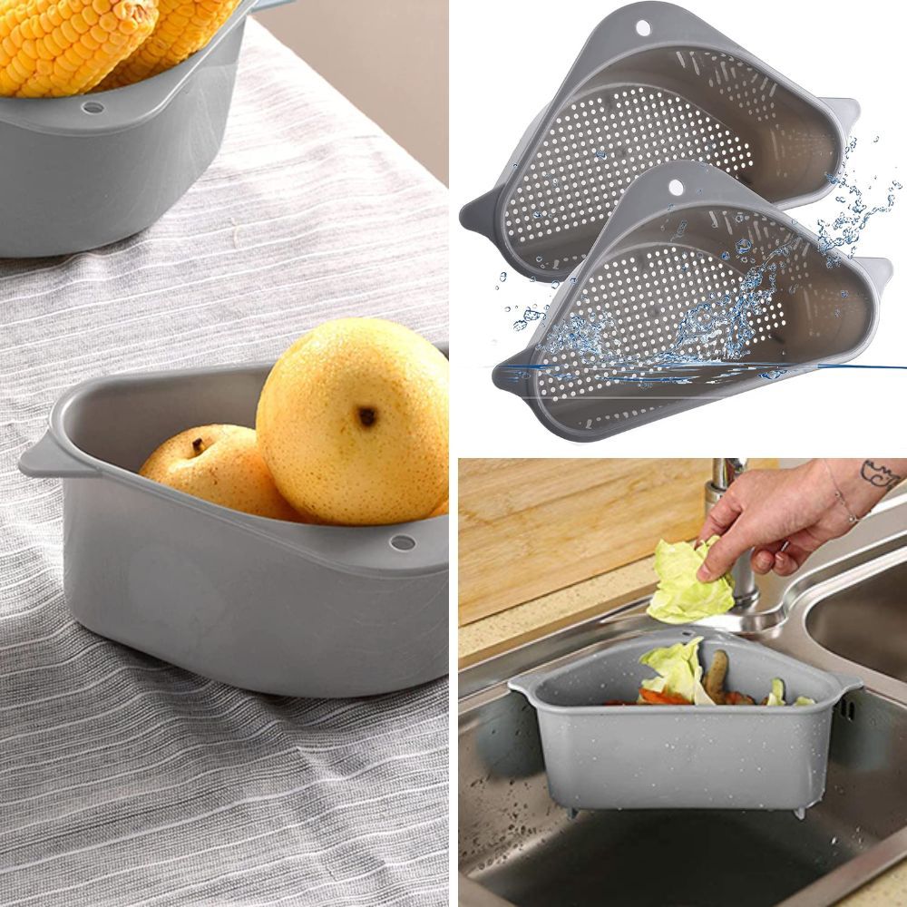 Keep your sink area tidy and prevent food scraps from clogging the drain with a corner sink strainer. Its unique design fits perfectly into the corner of your sink, maximizing space and improving drainage.