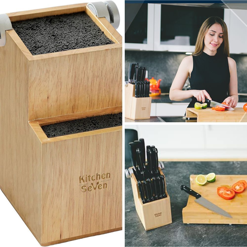 Streamline your countertop with a knife block that not only organizes your knives but also features a built-in knife sharpener. It ensures your knives are always in top-notch condition for precise and effortless cutting.