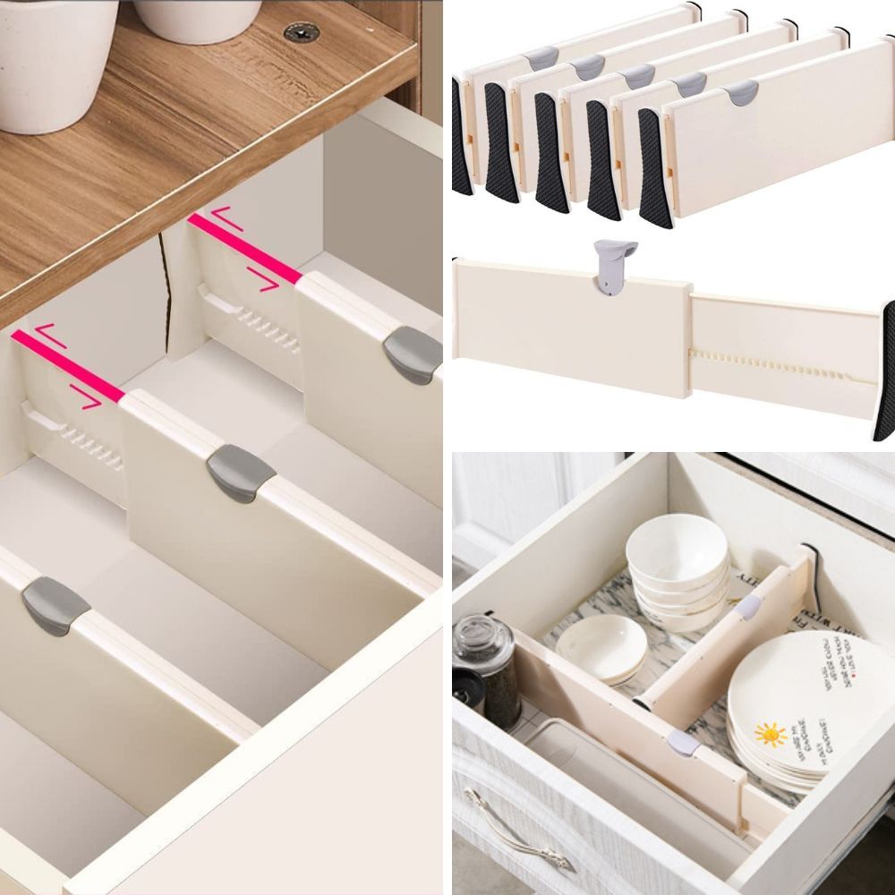 Keep your drawers tidy and clutter-free with drawer dividers. They help separate and organize your kitchen gadgets, cutlery, and other small items, making it easier to find what you need.