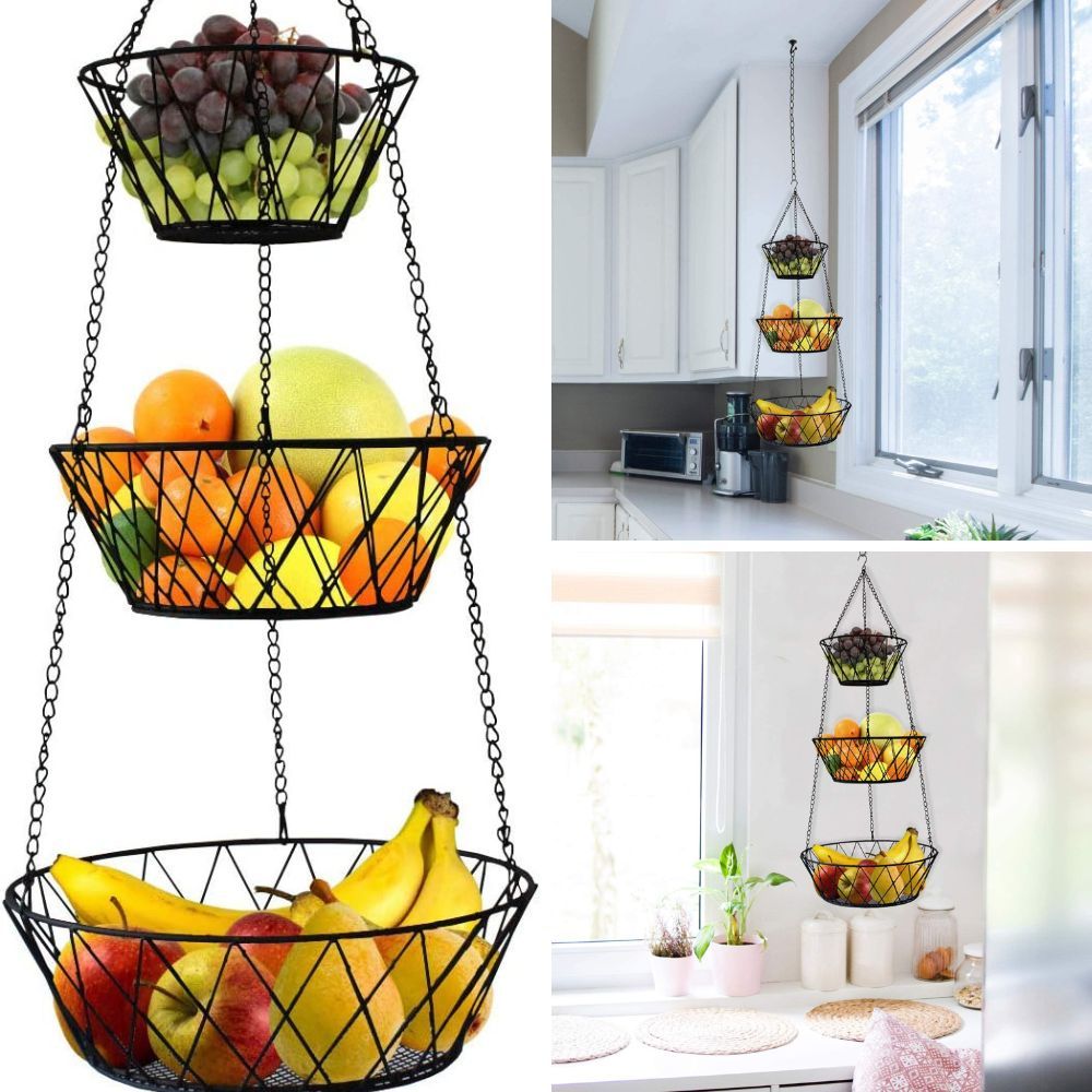 Maximize countertop space and showcase your fresh produce with a hanging fruit basket. It keeps your fruits within reach while adding a decorative touch to your kitchen.