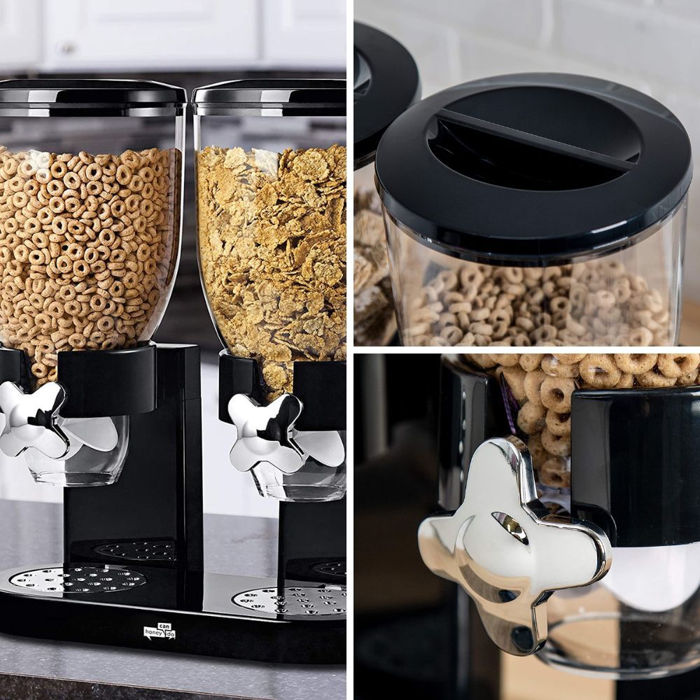 This sleek and modern dispenser is designed to store and dispense a variety of dry foods, such as cereals, grains, or snacks. With its airtight seal, it helps to maintain the freshness and quality of your food while reducing mess and clutter. Simply turn the knob, and the dispenser releases the desired portion, making it perfect for portion control and quick snacks.