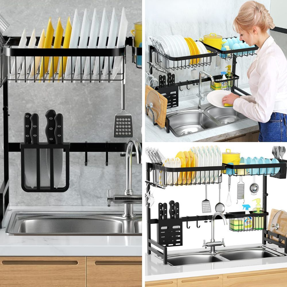 Maximize your counter space with an over-the-sink dish drying rack. It provides a convenient spot to dry your dishes, utensils, and even fruits and vegetables, while allowing water to drip directly into the sink.