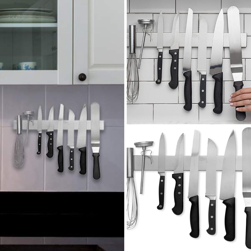 Free up counter space and keep your knives within reach with a magnetic knife strip. It securely holds your knives in place while adding a sleek and modern touch to your kitchen decor.