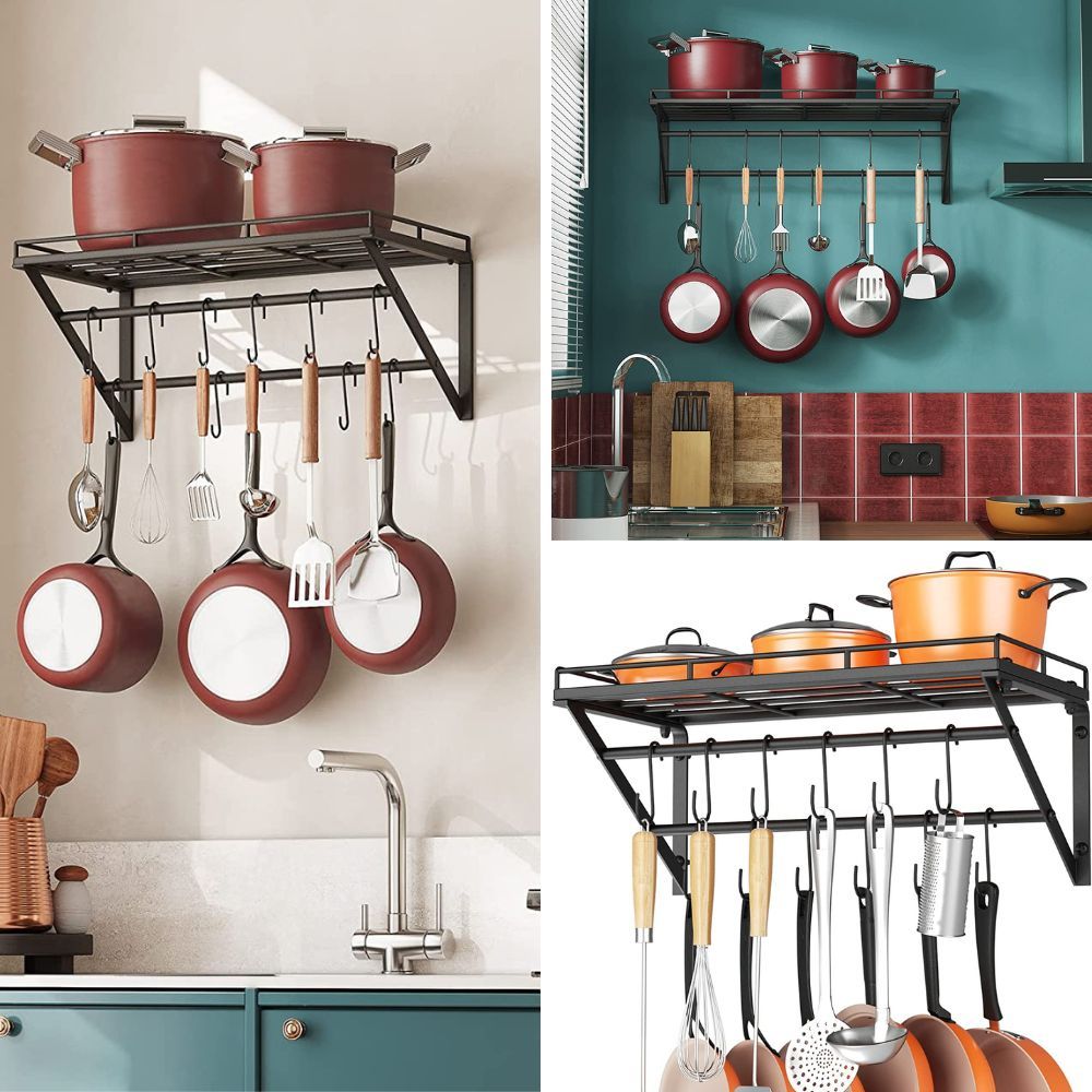 Free up cabinet space by hanging your pots and pans with a hanging pot and pan organizer. It not only keeps your cookware easily accessible but also adds a stylish and functional element to your kitchen decor.