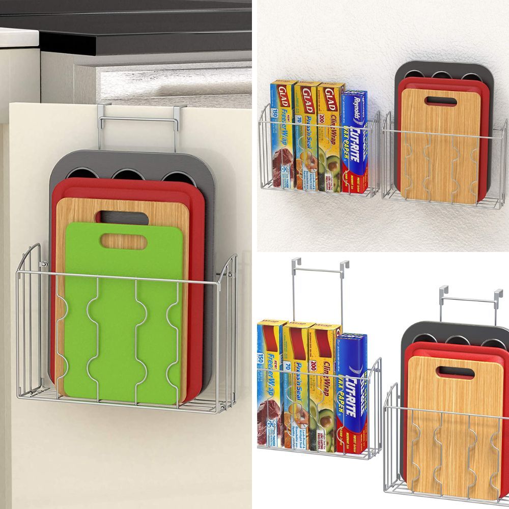 Make the most of the space behind your cabinet doors with an over-the-cabinet door organizer. It provides a convenient storage solution for cutting boards, baking sheets, and other flat items, helping to declutter your countertops.