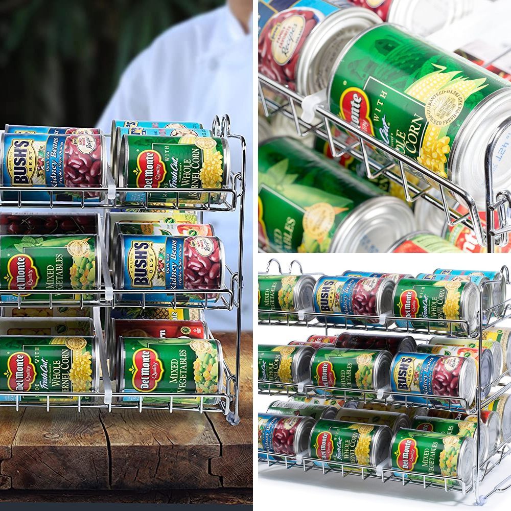 Maximize your cabinet space and keep your canned goods neatly organized with a stackable can rack organizer. Its tiered design allows for easy visibility and access to your favorite canned items.