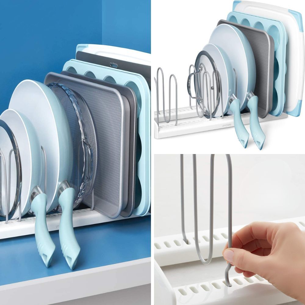 Tired of digging through a jumble of pots and lids? Invest in an adjustable pan and pot lid organizer. With its customizable design, it can accommodate different sizes and shapes of cookware, keeping them neatly in place and easily accessible.