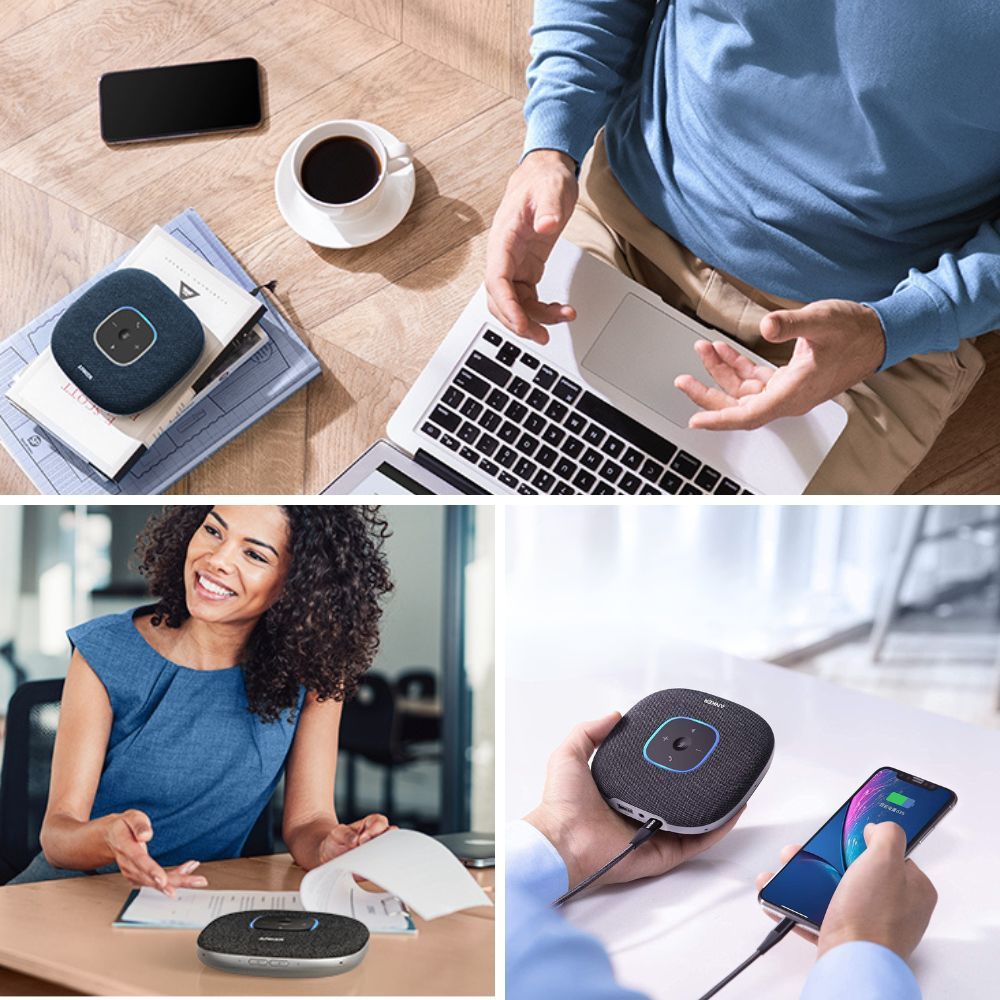 The PowerConf S3 is not your average speakerphone. It's designed to make your voice sound super clear while cutting out background noise. Thanks to its 6 microphones, your voice is picked up from anywhere in the room. It automatically adjusts your voice level, so you always sound just right. Plus, it's a breeze to set up and works with all your favorite conferencing platforms. Say goodbye to muffled calls and hello to crystal-clear conversations.
