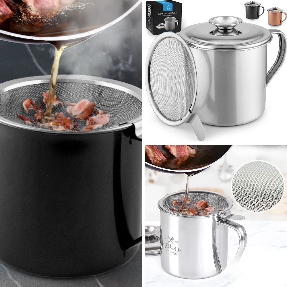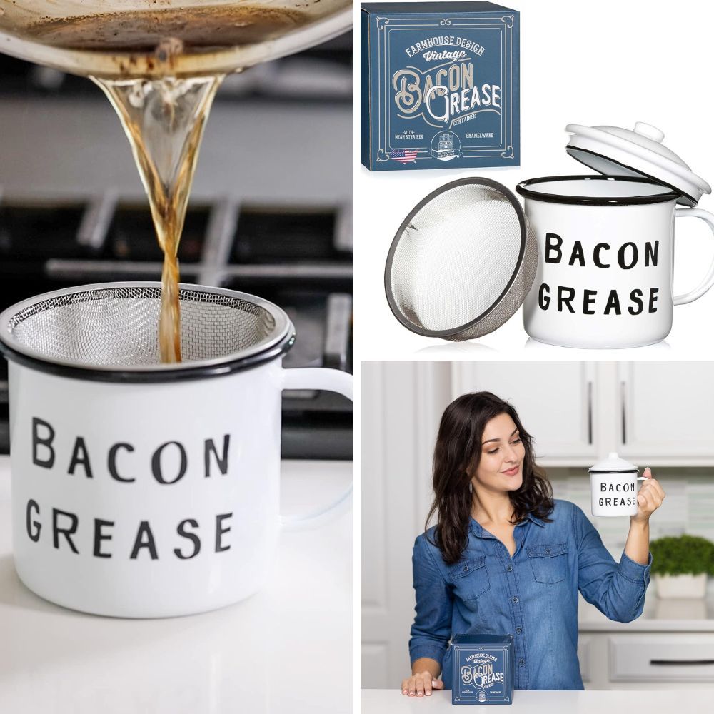 Bacon grease containers are tailored to the task of housing and preserving leftover oil from cooking bacon. Unlike generic containers, a dedicated bacon grease container offers features like a specially designed strainer, heat-resistant materials, and a secure lid. These containers are a cut above when it comes to just bacon grease storage, ensuring that you can separate leftover grease from bacon bits with ease while maintaining the quality of the leftover oil.