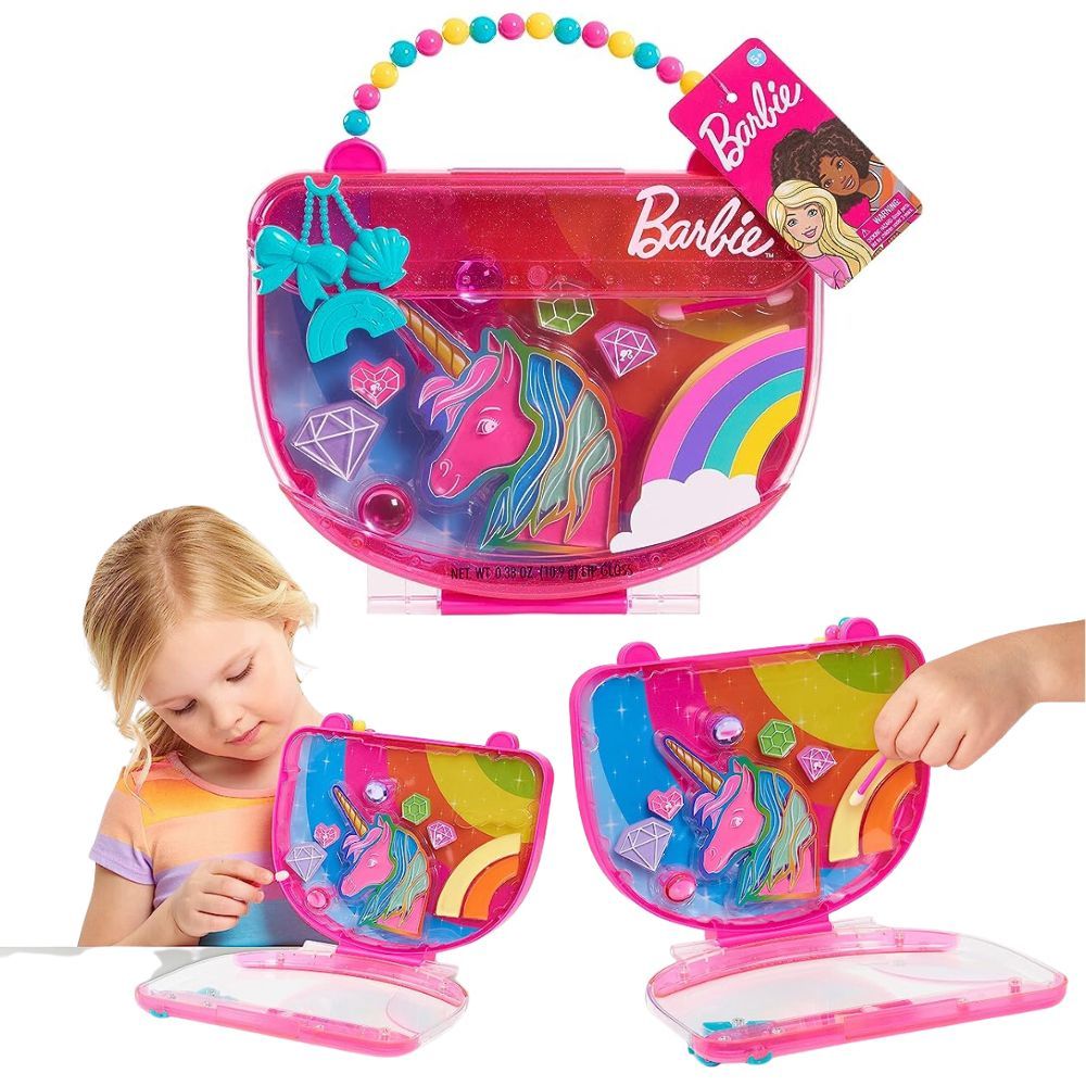 Bring a dash of dazzle and a sprinkle of glamour to the young ones with the Barbie Purse Perfect Makeup Case! This enchanting surprise boasts a purse-shaped makeup case containing an array of delightful treats for aspiring beauty mavens. Unlock their creativity with 1 unicorn face makeup palette, 1 rainbow face makeup palette, 4 gem-shaped face makeups, 1 applicator brush, and 2 rings—transforming them into makeup artists in their own right! The beaded handle ensures ease of transport for little hands, allowing them to create exquisite makeup looks at makeup parties, sleepovers, birthdays, and beyond. Empower young hearts to express themselves with flair and self-confidence as they dabble in the world of makeup and self-expression, embracing their unique beauty!
