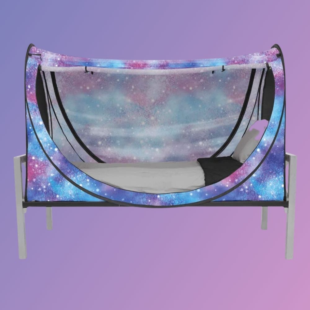 The Privacy Pop Eclipse Bed Tent - Queen/Unicorn Galaxy is the ultimate accessory for any bedroom oasis.