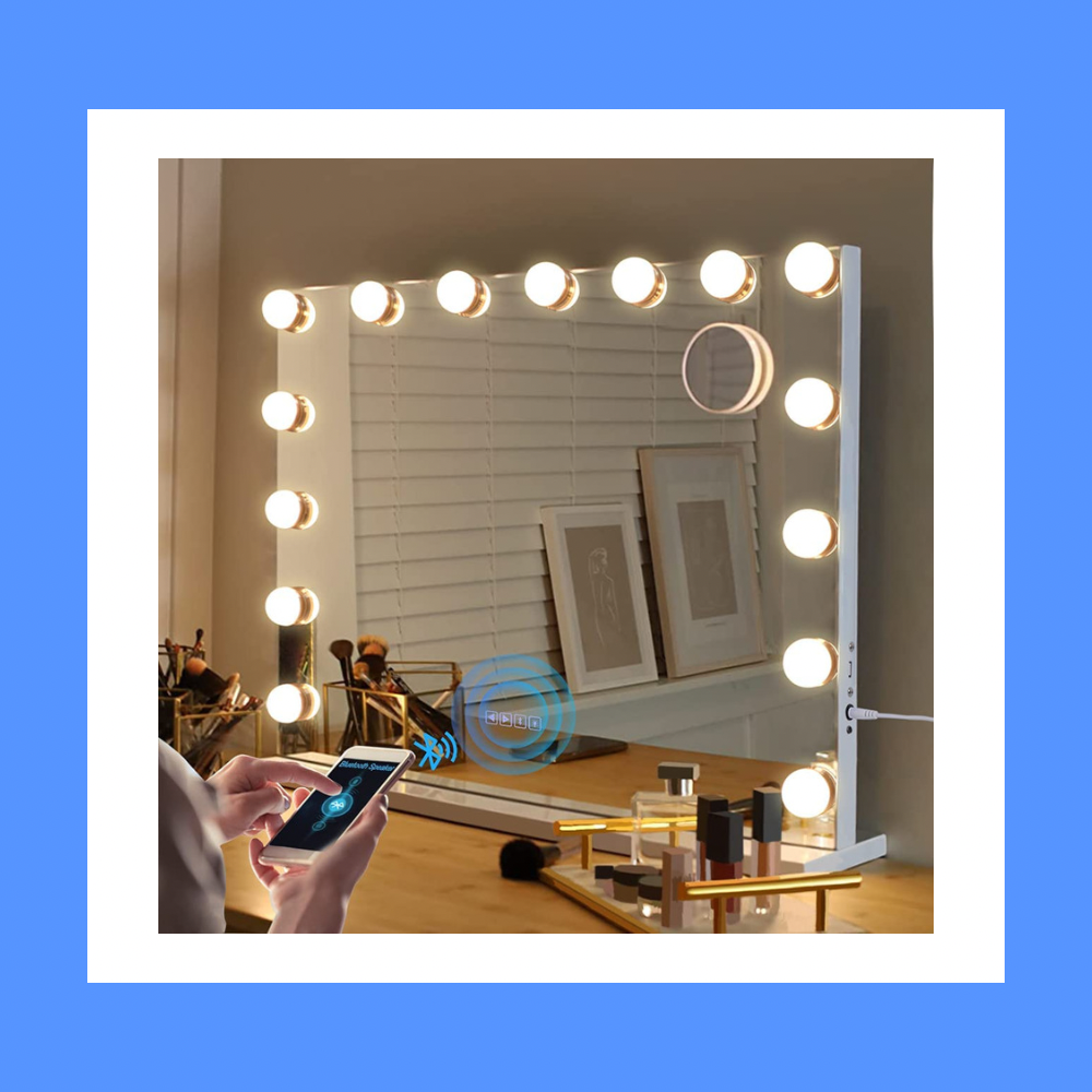 By using a Bluetooth mirror, you can see yourself in the mirror while also being able to use your phone or other device to do your hair and makeup.