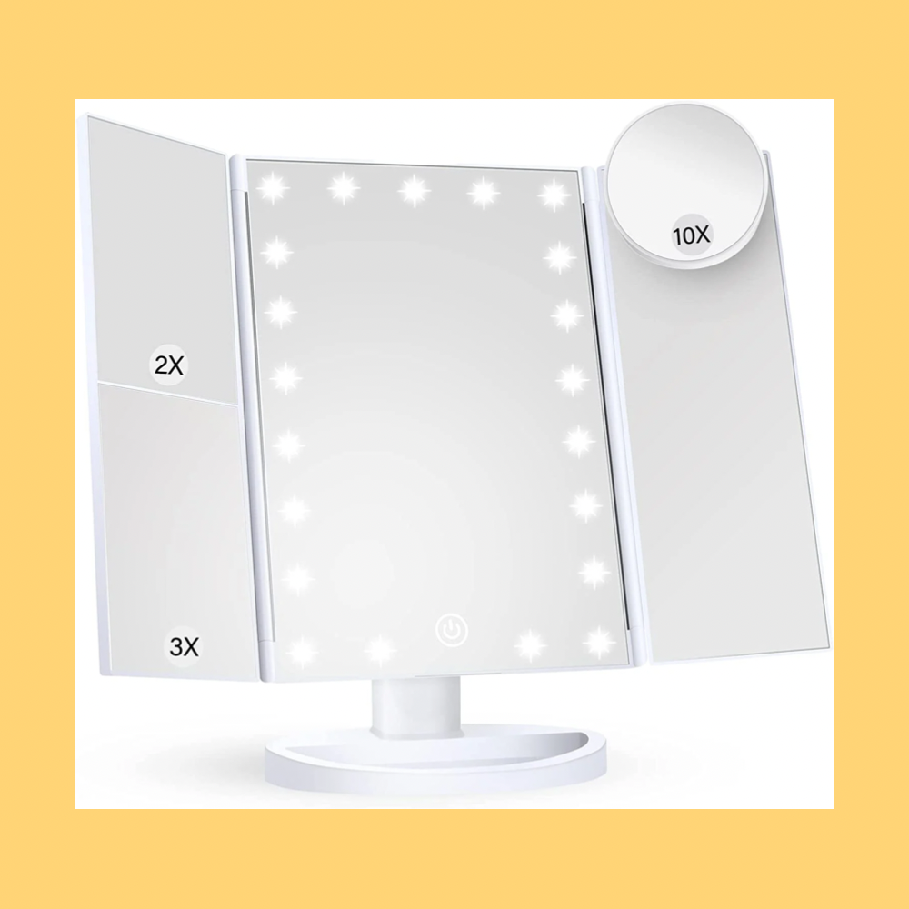 This lit makeup mirror has 3 panels magnifying and wide-angle viewing, so you'll never have to worry about missing a spot.