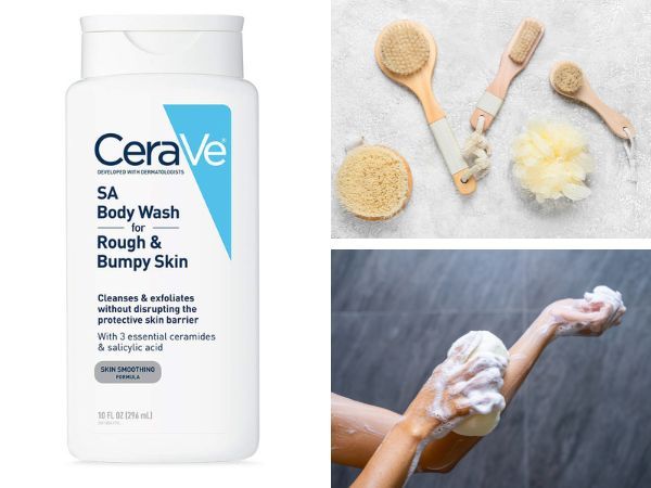 CeraVe Hydrating Body Wash with Salicylic Acid can help. Exfoliate dead skin cells and smooth skin with this chemical exfoliant, which feels less harsh than physical ones.