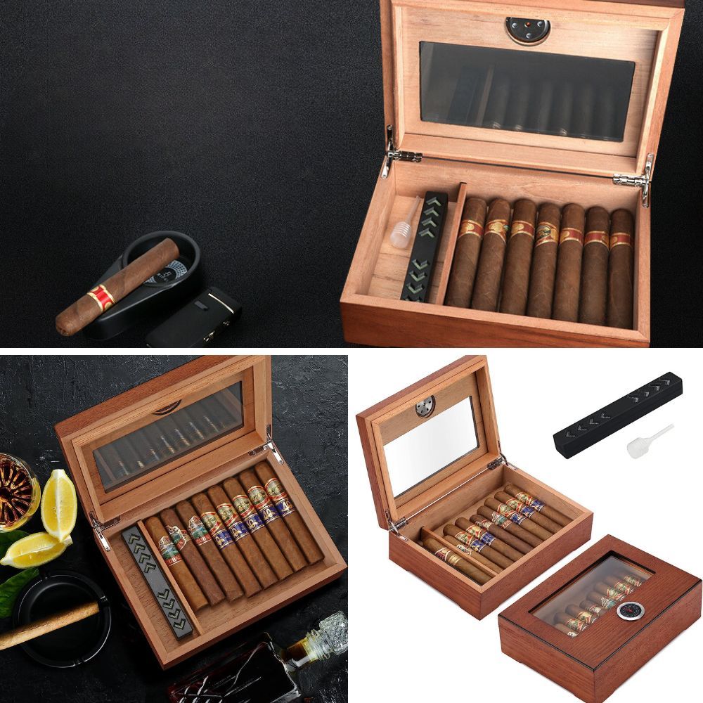 Its analog hygrometer speaks the language of humidity, ensuring cigars enjoy a symphony of moisture.