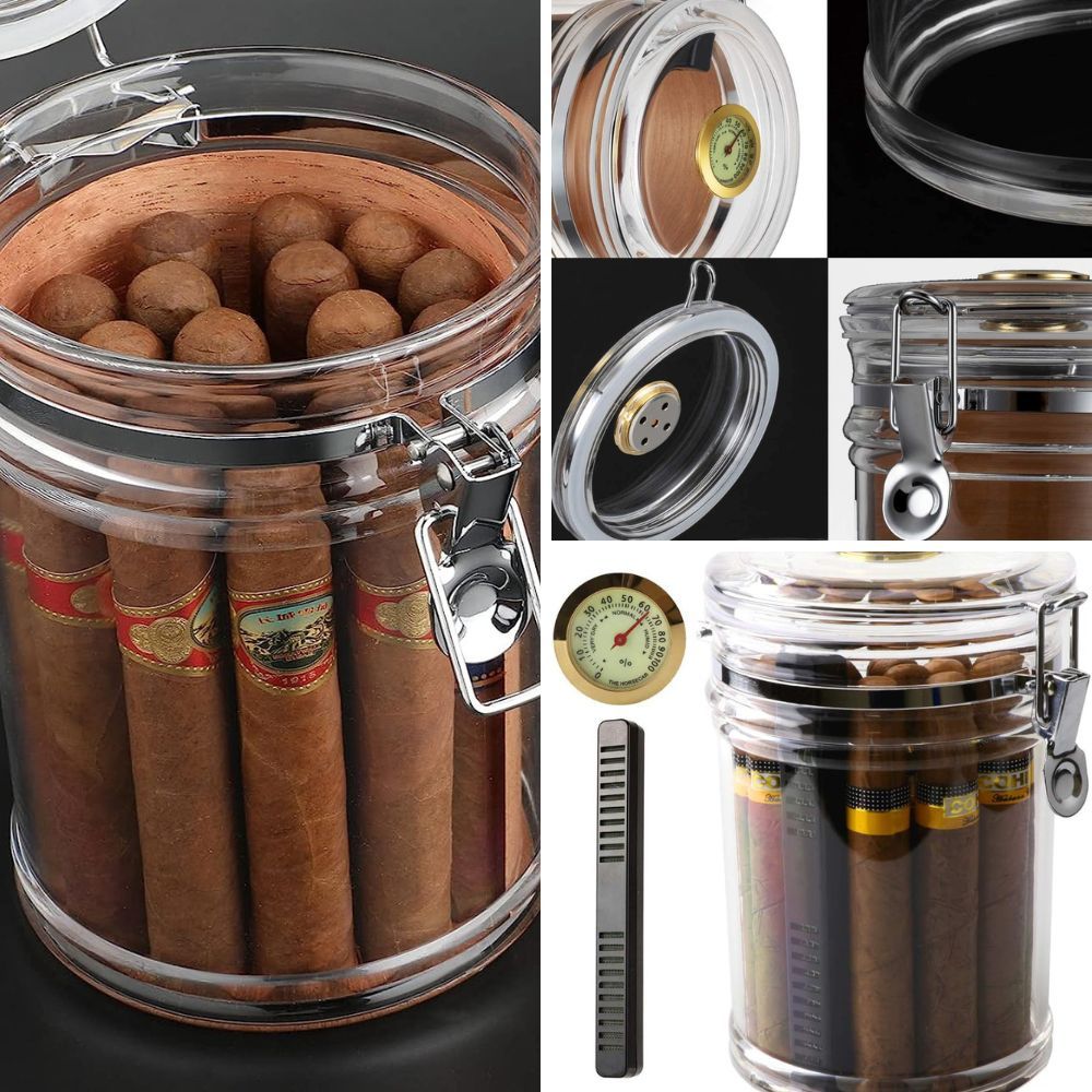 A symphony of acrylic, transparency, and design orchestrate this humidor jar.