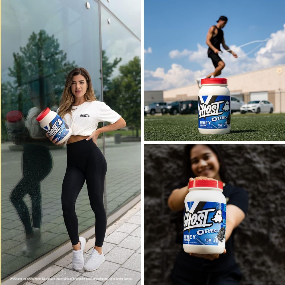 GHOST's commitment to authenticity shines as they partner with OREO to infuse the powder with genuine OREO cookie pieces.