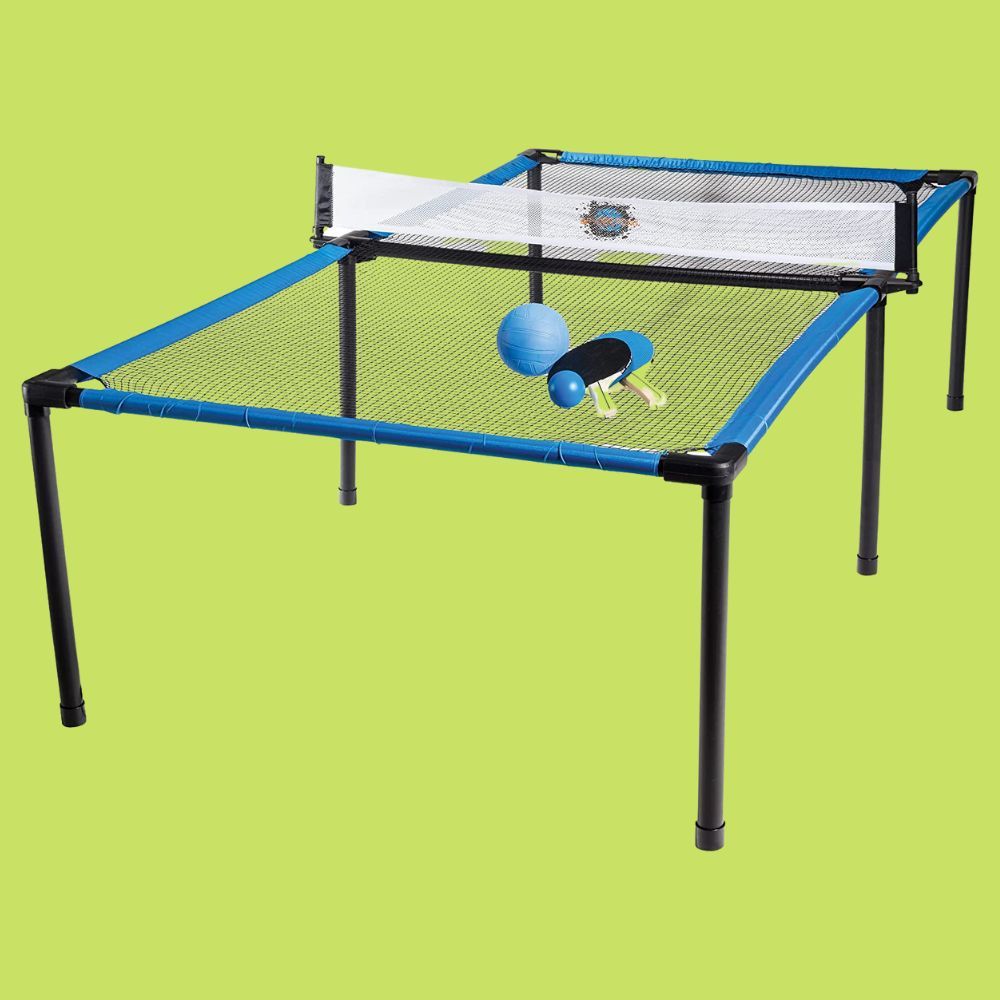 This complete set includes everything you need to get the game rolling— a mid-size 6' x 3' table with two paddles, game net and four balls.