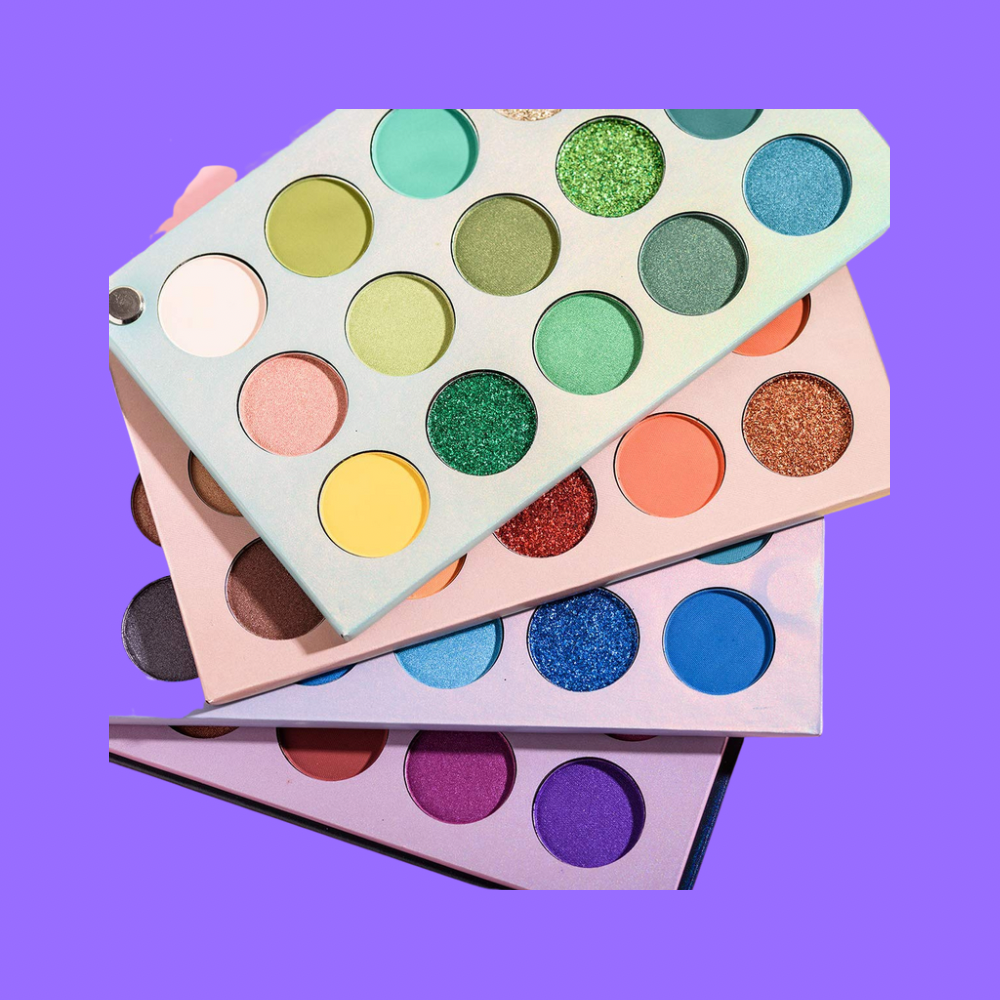 This type of eyeshadow features multiple colors in one pan, which makes creating a rainbow look easy.