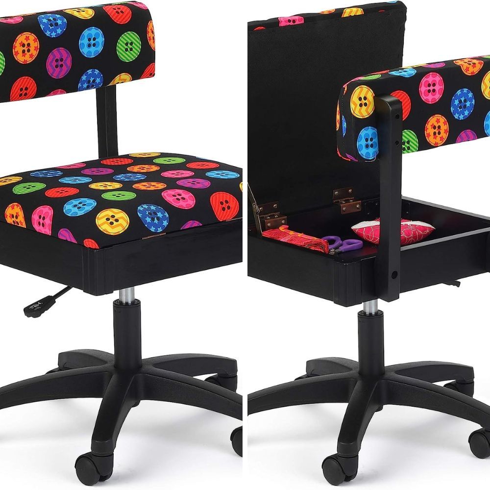 Hydraulic Sewing Chair - with Riley Black Button Motif Fabric