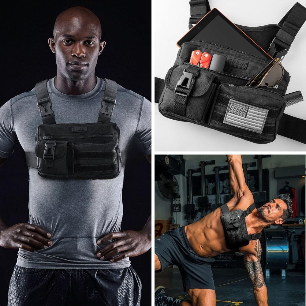 Introducing the Fitdom Tactical Inspired Sports Utility Chest Pack: your new best friend for those who yearn for adventure with a dash of practicality. Imagine a world where your essentials - phone, earbuds, wallet, and the kitchen sink (just kidding) - comfortably reside not in the abyss of a fanny pack, nor dangling precariously from an armband, but nestled against you in a cozy, snug fit. This marvel of storage, sized at a neat 9x6.25x2 inches, prides itself on being the Goldilocks of carry-alls: not too big, not too small, but just right. With its quartet of elastic straps, adjustable to the unique contour of your physique, it promises a bounce-free experience, ensuring that the only thing moving is you. Dive into the plethora of compartments designed for the minutiae of daily life, from keys to cards to gadgets, all while basking in the knowledge that your belongings are ensconced in a fortress of high-quality, water-repelling polyester. Whether you're traversing urban jungles or embarking on real ones, this chest bag is your ticket to a hassle-free adventure.