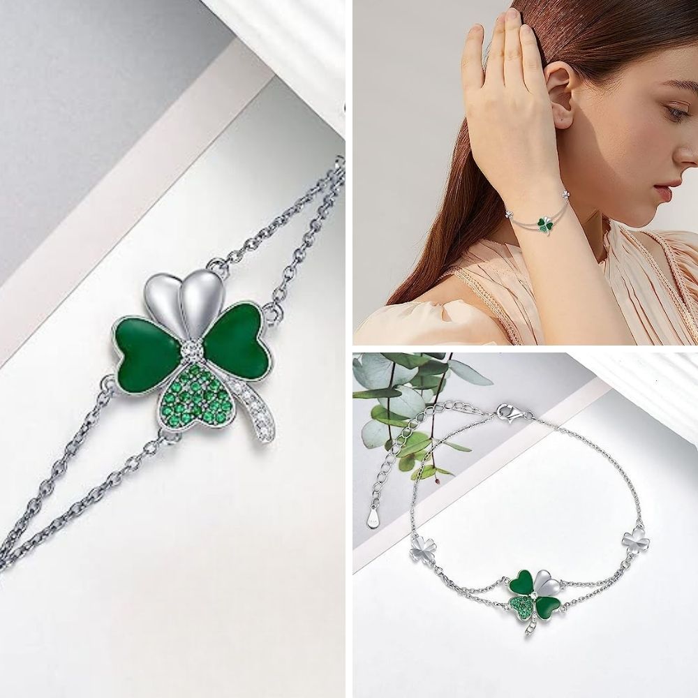 Wear the 4 Leaf Clover Bracelet and immerse yourself in a world of unwavering belief, hope, love, and good fortune. Celtic legends ascribe magical protection to these cherished charms, safeguarding against misfortune. The Irish heritage blesses those who carry these clovers, fostering avoidance of mishaps and fortuity at every step. Cherish your best friend like a precious four leaf clover—rare to find, yet a beacon of fortune. Unleash the luck of the Irish with this exquisite gift, a perfect choice for occasions like Christmas, Valentine's Day, Mother's Day, Birthdays, and Anniversaries. Embrace St. Patrick's Day with the elegance of shimmering green leaf clover bracelets, harmonizing perfectly with festive attire, promising a celebration filled with joy and delight.