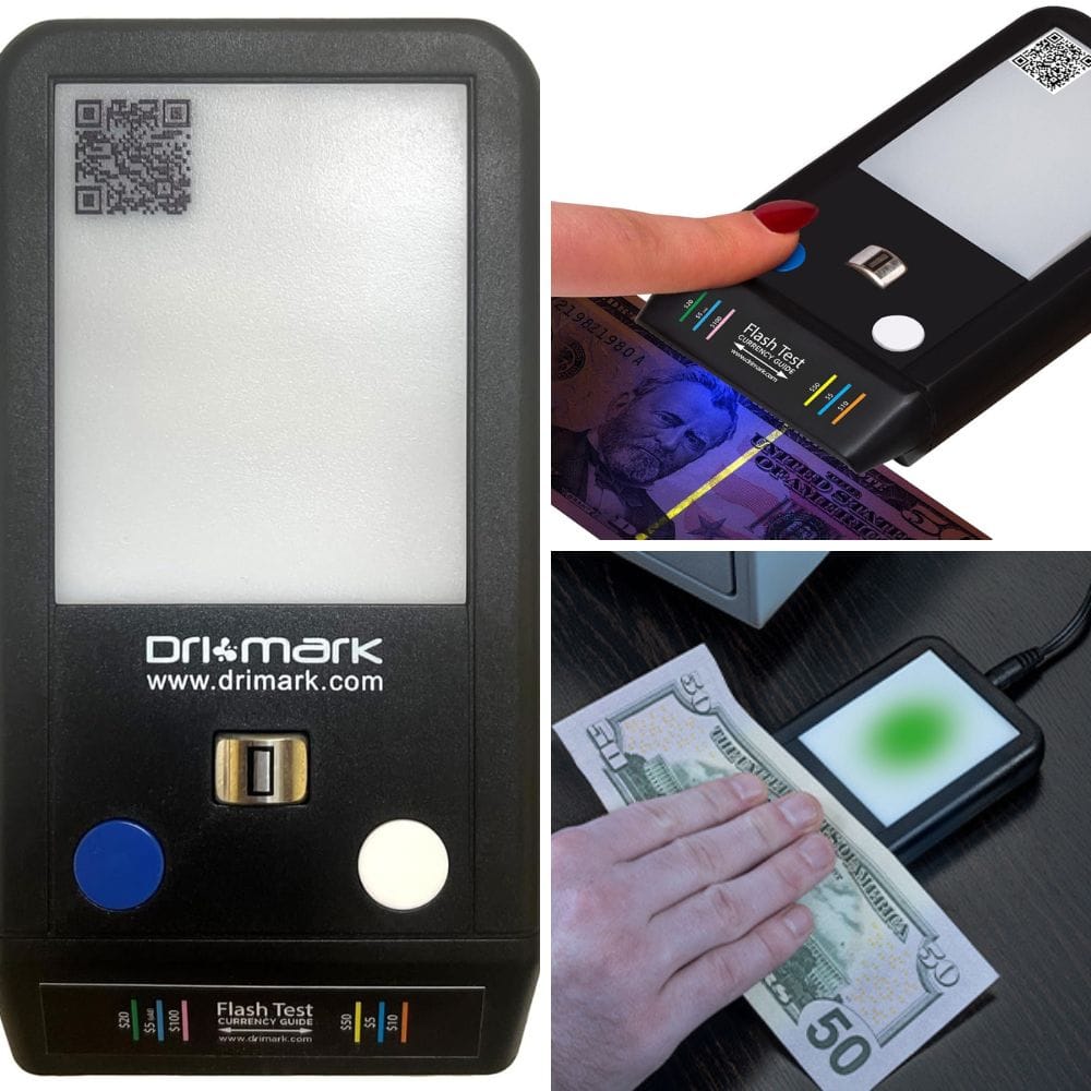 Finally, there’s the Dri Mark Flash Test, the quick and discreet sentinel beside your cash register. This device doesn’t just detect fake money; it does so with the speed and accuracy of a hawk swooping on its prey. With a three-pronged approach to verification, it scrutinizes watermarks, ink, and security strips with an efficiency that’s borderline show-offy. Designed to be always on guard, it needs no batteries, making it the zero-maintenance hero your store deserves. Initially tailored for the bustling world of convenience stores, it's proof that great things come in small, powerful packages.