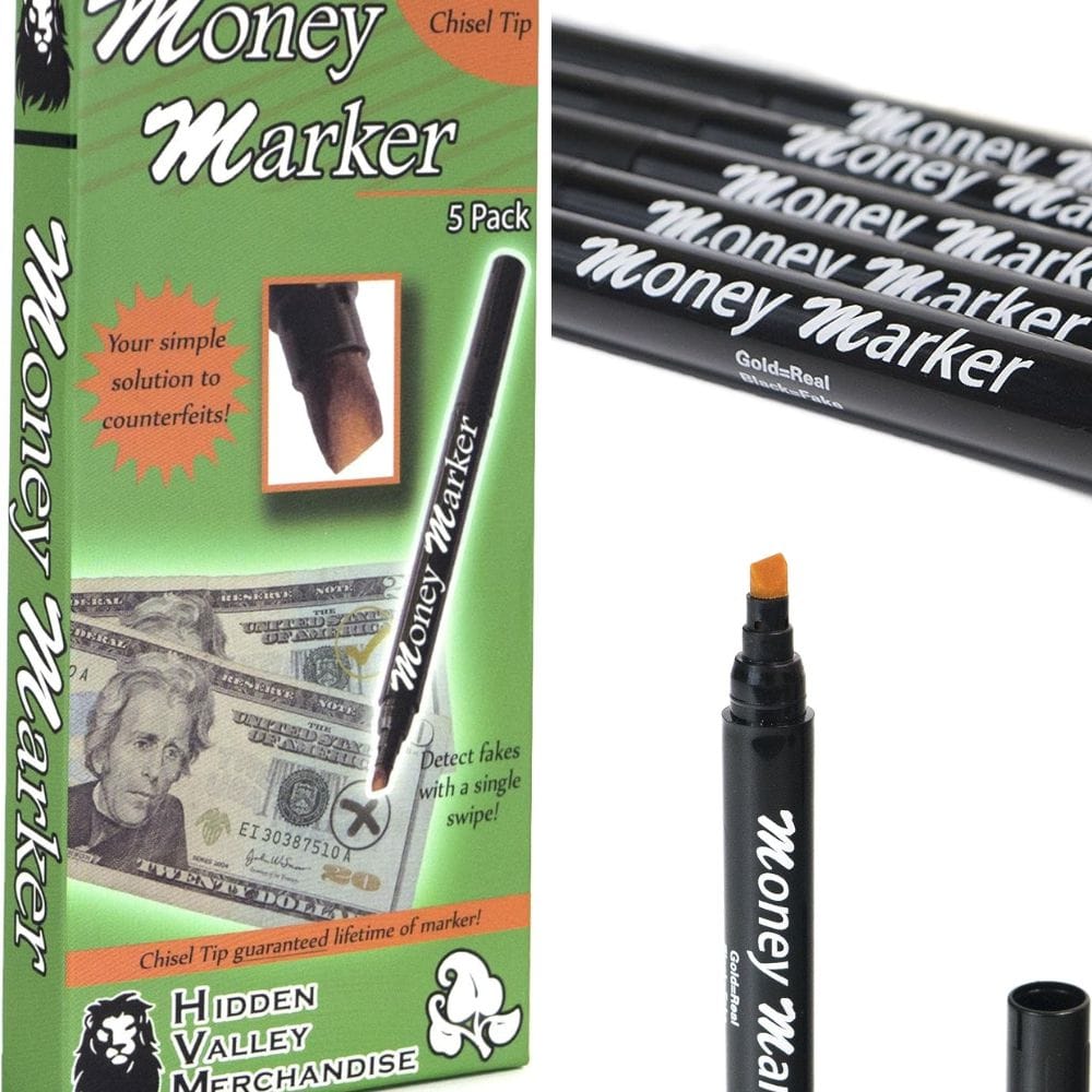 Introducing the HVM Money Marker: it's more than just a pen, it's your frontline defense in the battle against bogus bills. With a design so slick it could easily double as a spy gadget, this pen comes with a refillable ink chamber, ensuring it’s a long-term ally. Its chisel tip isn’t just for show; it's precision-engineered for pinpoint accuracy in detecting the duds. Whether you're right-handed, left-handed, or ambidextrous, this pen doesn’t discriminate, offering universal compatibility and a knack for unveiling counterfeit currency with a flair that's almost as impressive as its efficiency.