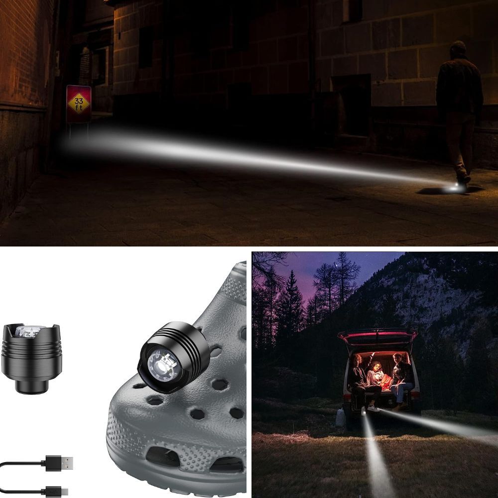 Ignite your path with the Kitsology Headlights for Croc! Designed specifically for clogs, these lights are so lightweight and stable that you won't even notice them during your outdoor activities such as night walking, running, or cycling. The U-shaped base ensures a tight fit on your shoes, providing a secure attachment. Featuring three modes of lightning—constant light, fast flashing, and slow flashing—you can choose the perfect mode for every occasion. With their upgraded waterproof design and high-quality ABS construction, these lights fearlessly combat rainstorms and remain impervious to dust. The ultra-bright illumination casts a glow over 72 hours, ensuring improved visibility of your surroundings at night. Don't let darkness hold you back; let the Kitsology Headlights for Croc light up your path and add a touch of excitement to your outdoor adventures.