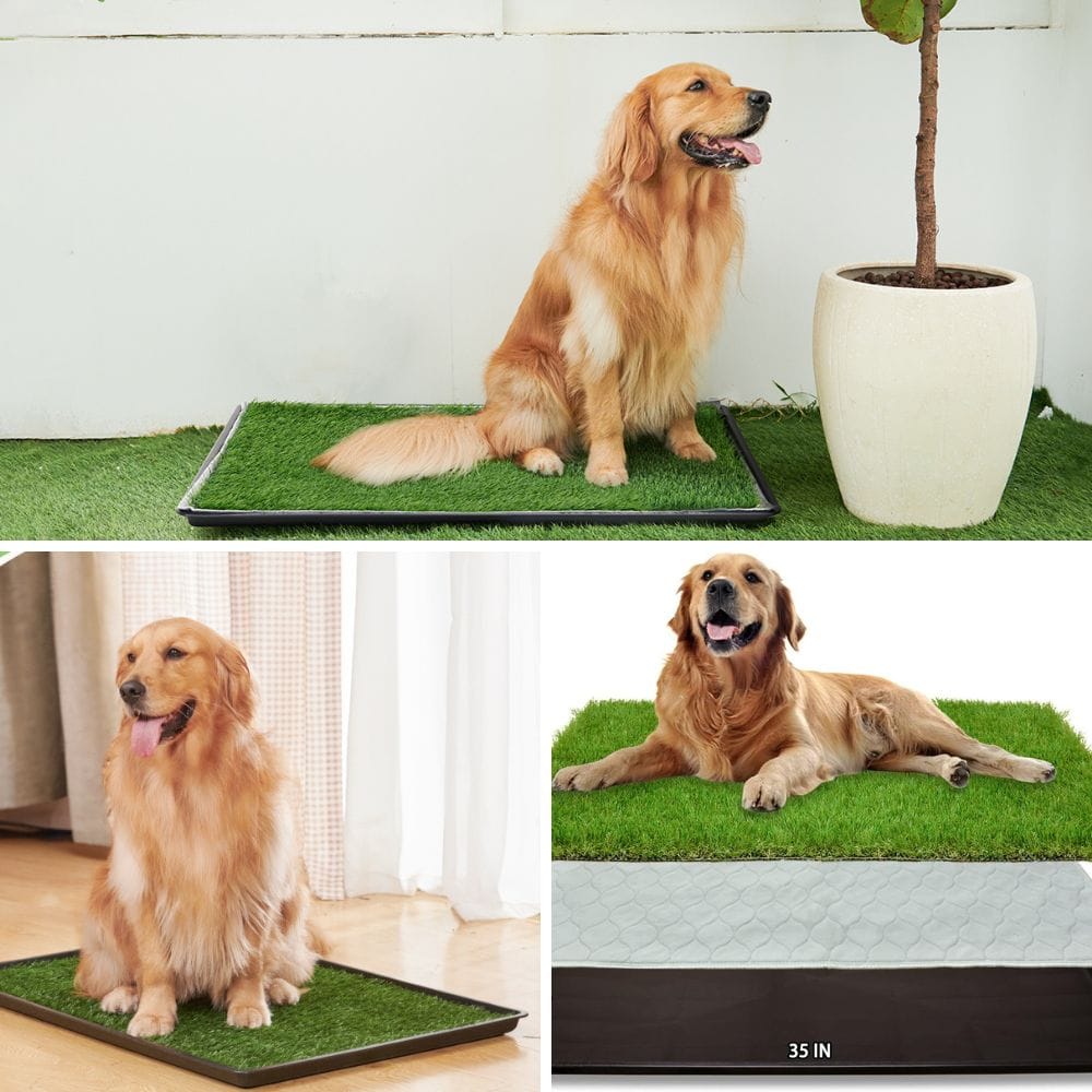A Dog Grass Pee Pad is a training tool designed to help your dog relieve themselves indoors or in confined outdoor spaces. It mimics real grass, helping dogs feel comfortable and encouraging them to use it as they would a natural lawn. Dog grass pee pads are ideal for potty training puppies, elderly dogs, or for use in apartments without a yard.