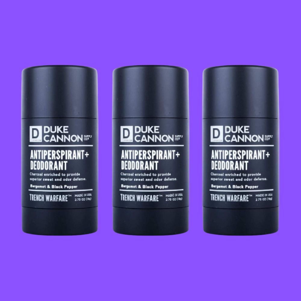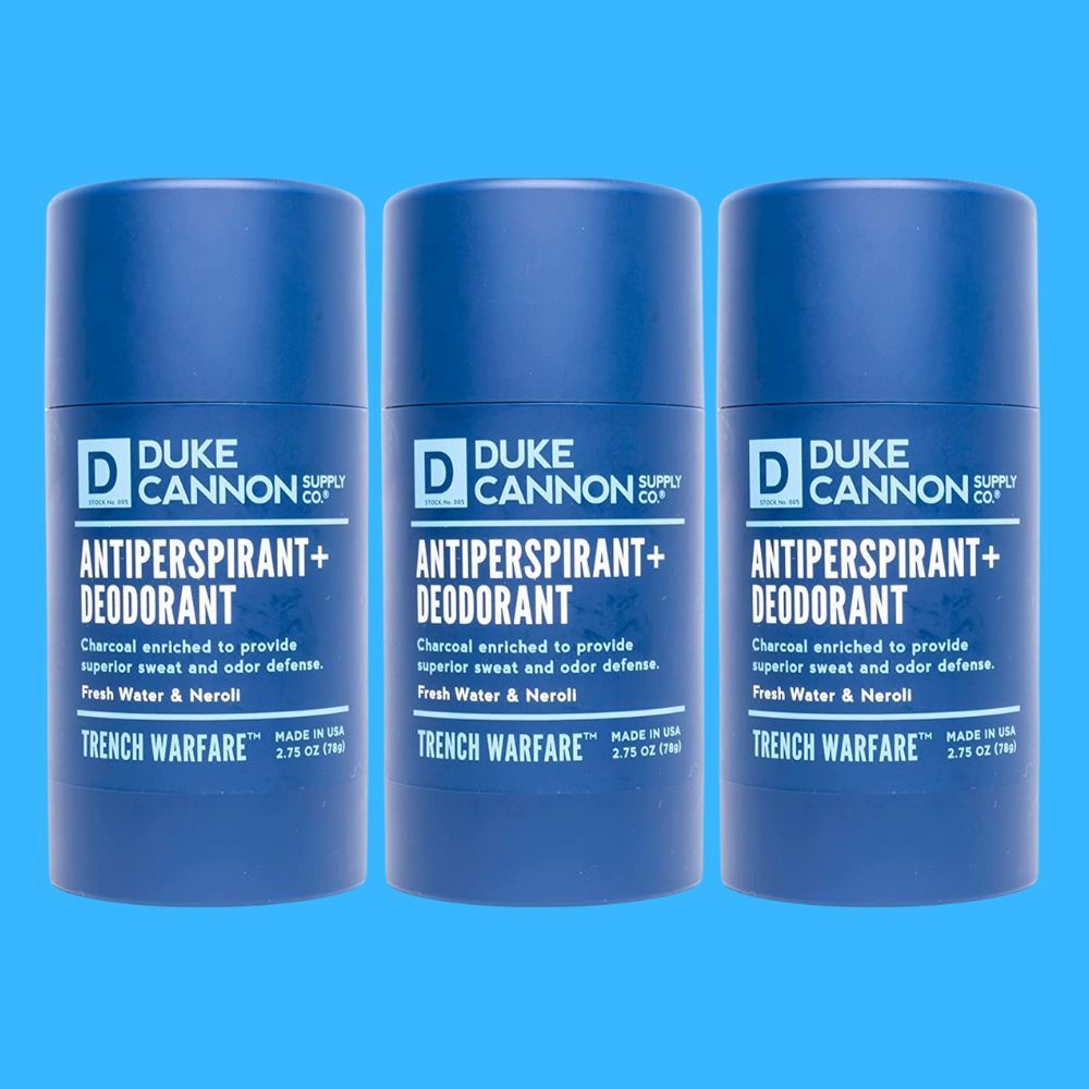 Look no further than Duke Cannon Supply Co. Trench Warfare Deodorant for Men FreshWater&Neroli!