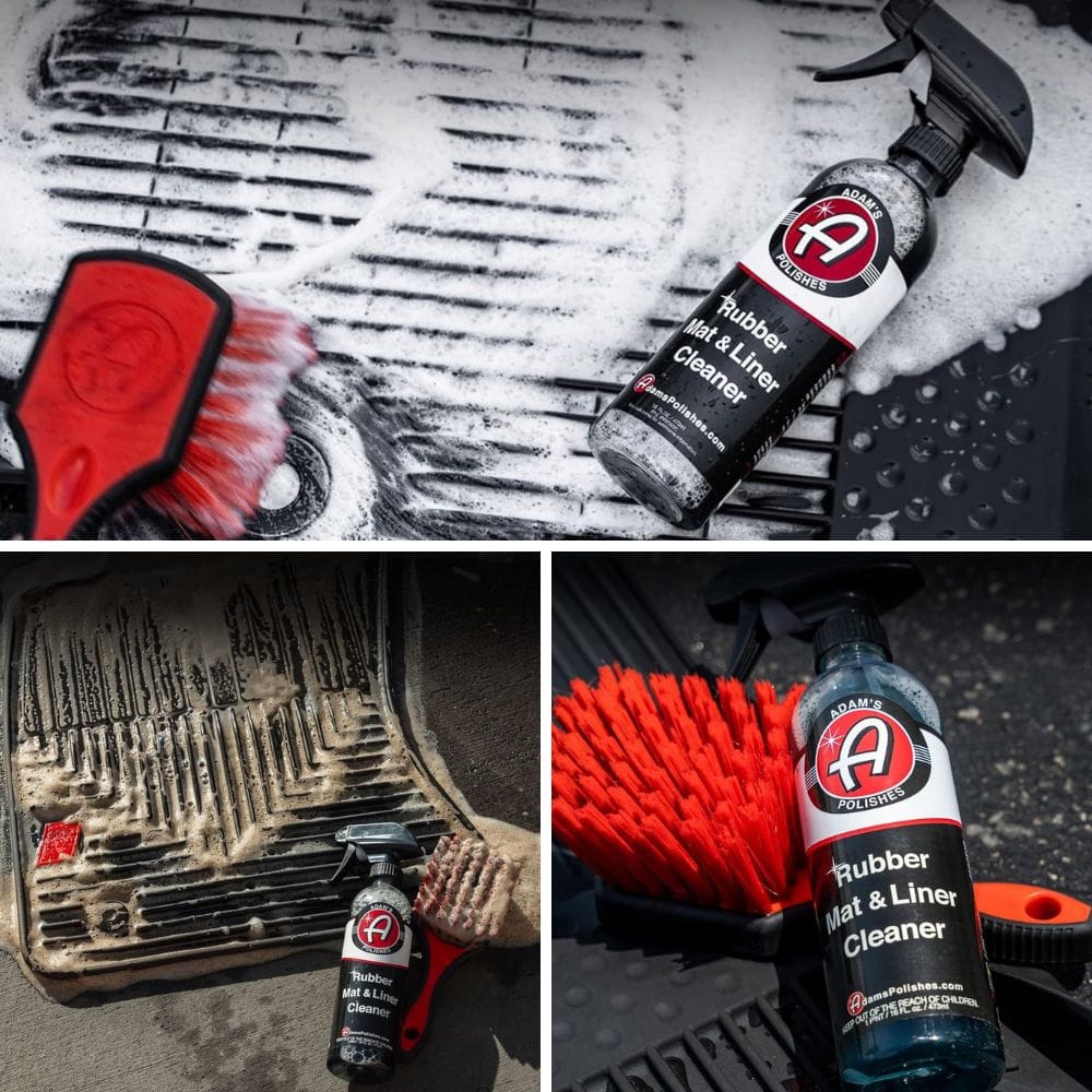With a citrus twist that could make a lemon jealous, Adam's Polishes Rubber Mat & Liner Cleaner is the zest you need for your cleaning routine. This cleaner doesn't just remove dirt and oxidation; it infuses your mats with a non-slip protectant, making them as functional as they are clean. Paired with the right brush, it's like a dance party for your mats, where the dirt gets booted out and the deep black OEM finish gets to shine. It's not just cleaning; it's an experience.
