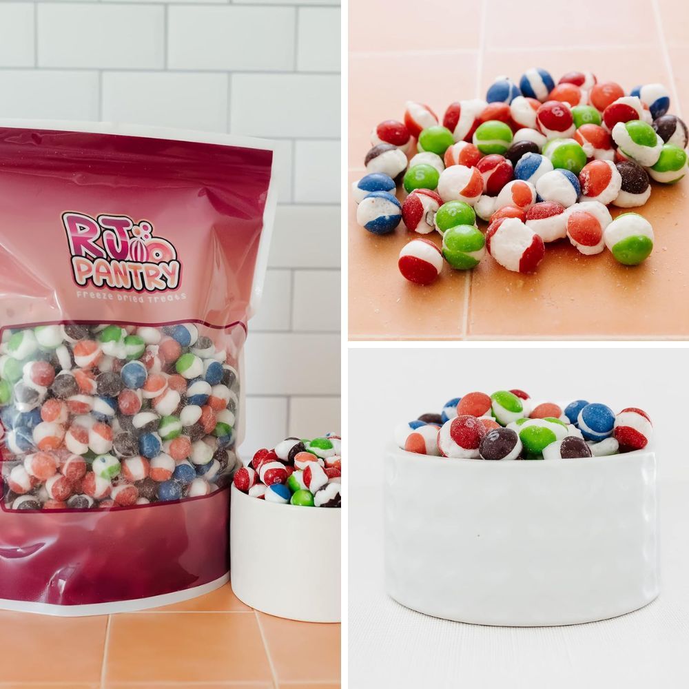 Dive into the avant-garde realm of confectionery with Freetles, an audacious twist on classic candy. Crafted through a meticulous alchemy of freeze-drying and unhurried heating in a vacuum, these little wonders boast a fragile facade and fragmented shell. Devoid of moisture, their flavors gallivant unchecked, leaving your palate spellbound. Whether you're indulging in some solitary snacking, sprucing up a sundae, or seeking an unorthodox gift, Freetles are your ticket to a flavor fiesta.