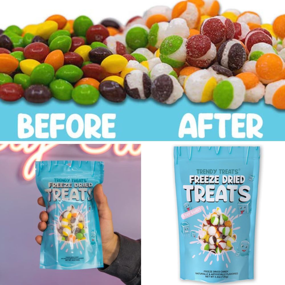 Step into the world of avant-garde confections with Trendy Treats' freeze-dried marvels. Through a masterstroke of culinary innovation, mundane candies undergo a metamorphosis into brittle delights, their flavors intensified tenfold. From quirky to the quintessential, these candies hail from every nook and cranny of the globe. With a shelf life that rivals legends, you can stash them for spontaneous adventures or social soirées. And if you're scouring for a gift that screams "eclectic", look no further! Housed in a cunning resealable bag, the freshness remains unscathed across multiple indulgences.