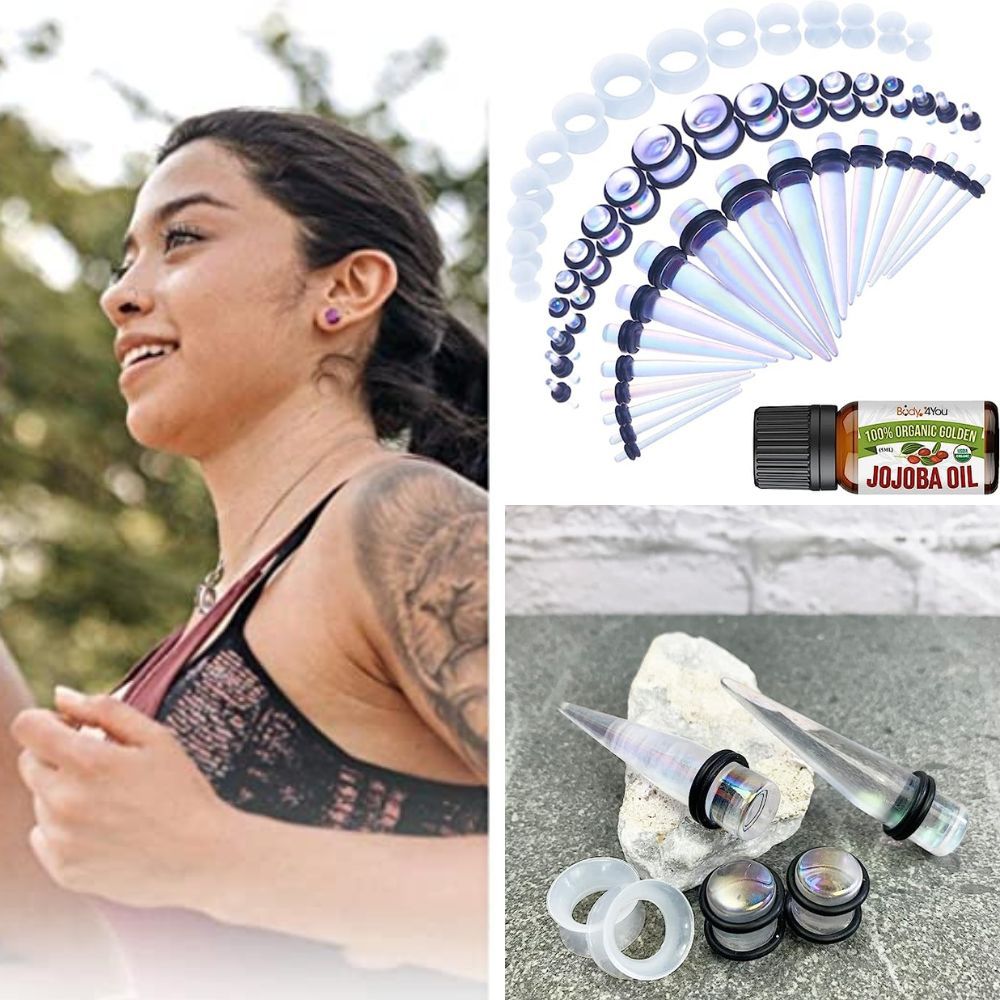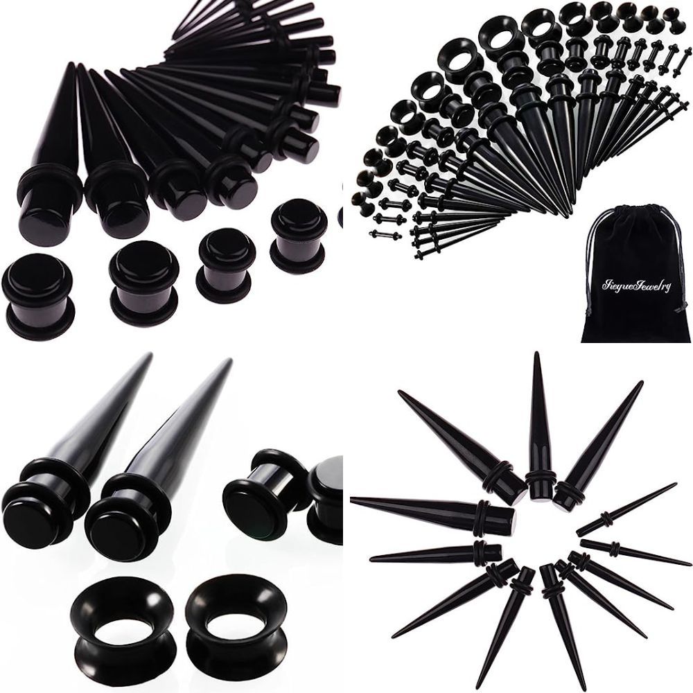 Expand your ear game effortlessly with the JieyueJewelry 50 Pieces Ear Stretching Kit. This high-quality kit includes 18 acrylic tapers, 18 acrylic plugs, and 14 silicone flared tunnels. Made from lightweight and durable materials, these tapers and plugs have a smooth surface finish, ensuring a pain-free stretching experience. Each size is individually packaged and verified for your convenience and peace of mind.