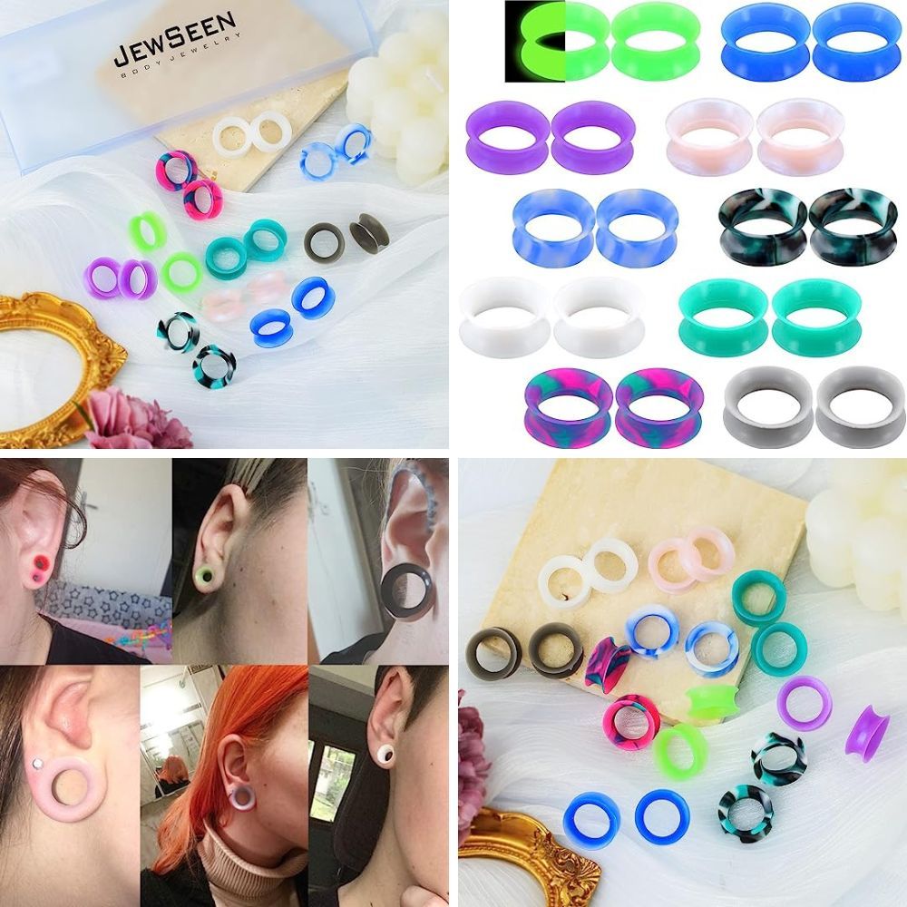 Express your colorful style with the Jewseen 20PCS Soft Silicone Ear Gauges Flesh Tunnels Plugs. This set features 10 pairs of soft silicone tunnels plugs in various sizes. Made from flexible rubber material, these plugs are lightweight, non-toxic, and allergy-free. They provide a smooth surface for comfortable daily wear, perfect for adding a pop of color to your look.