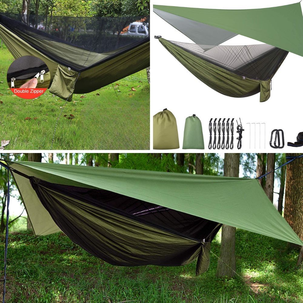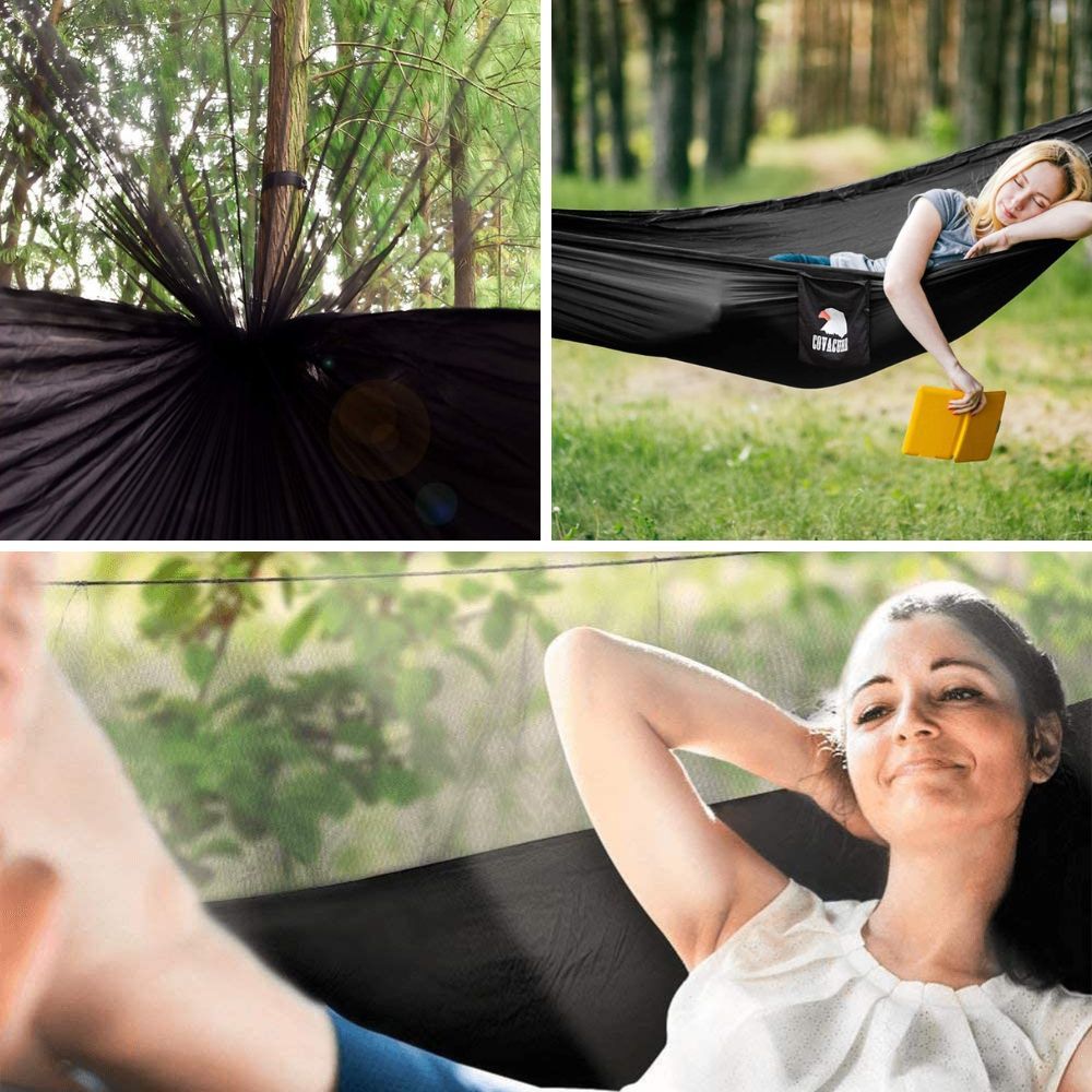 1. Double Camping Hammock with Mosquito Net: This spacious hammock provides ample room for two and comes with a built-in mosquito net. It's perfect for couples or anyone who loves extra space while sleeping comfortably under the stars.
