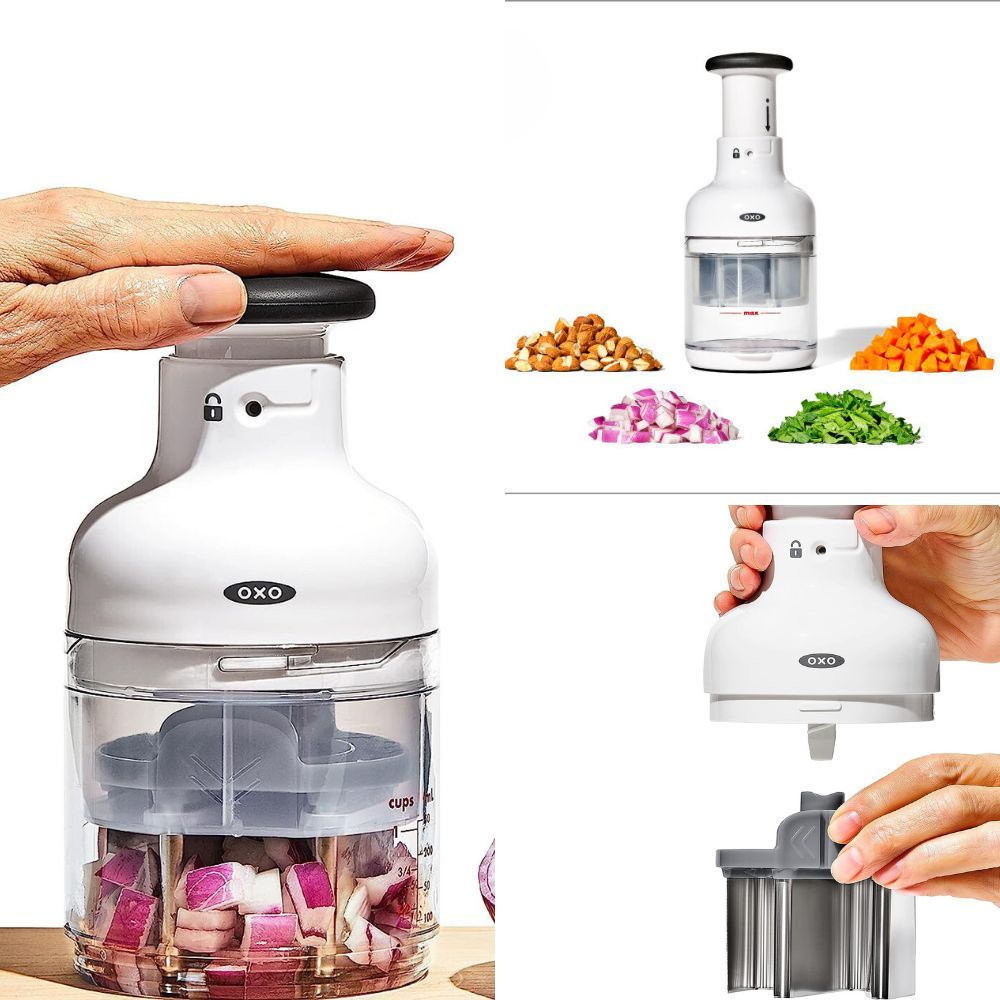 The OXO Good Grips Chopper is a game-changer in the kitchen. Its sharp, rotating stainless steel blade and comfortable knob ensure uniform chopping with minimal effort. The catcher cup with measurement markings adds convenience, perfect for preparing salads, salsas, and more.
