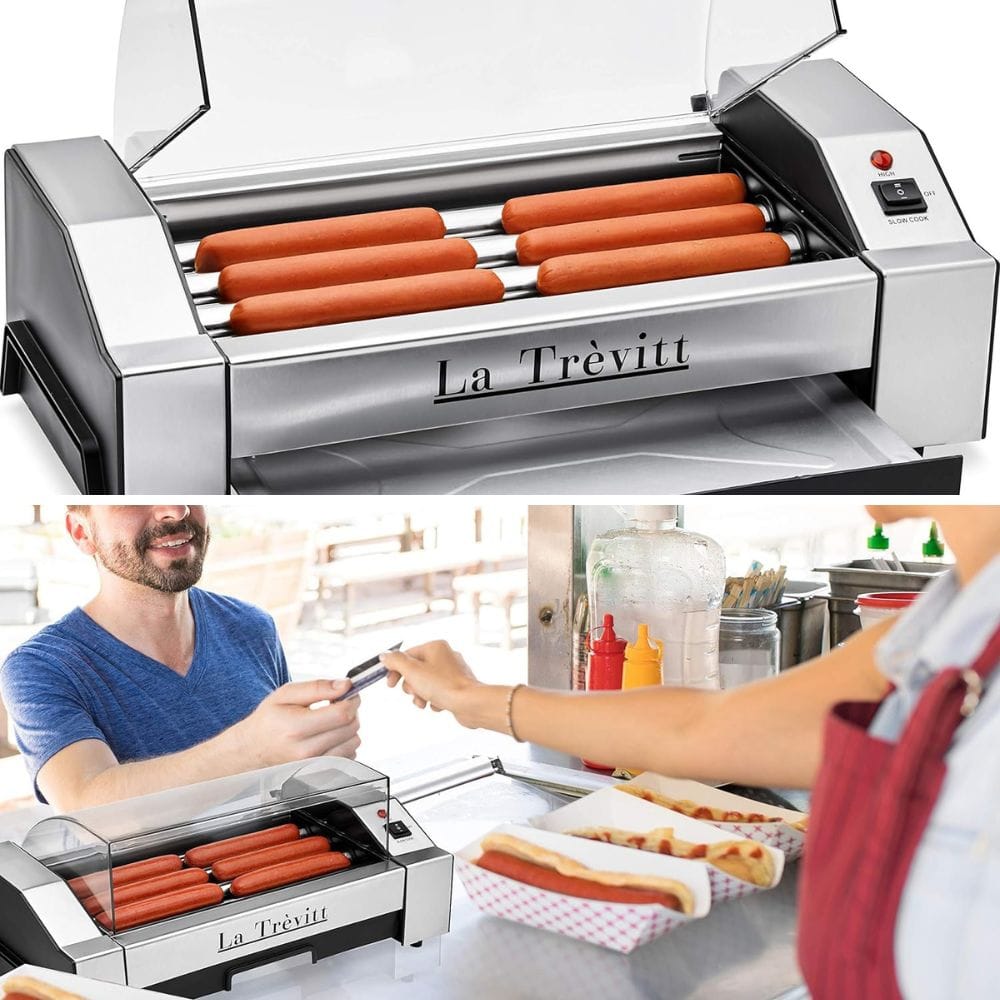This marvel of modern engineering doesn't just cook hot dogs; it lovingly caresses them on all sides with its five stainless steel heated rollers, ensuring each bite is evenly cooked to perfection.