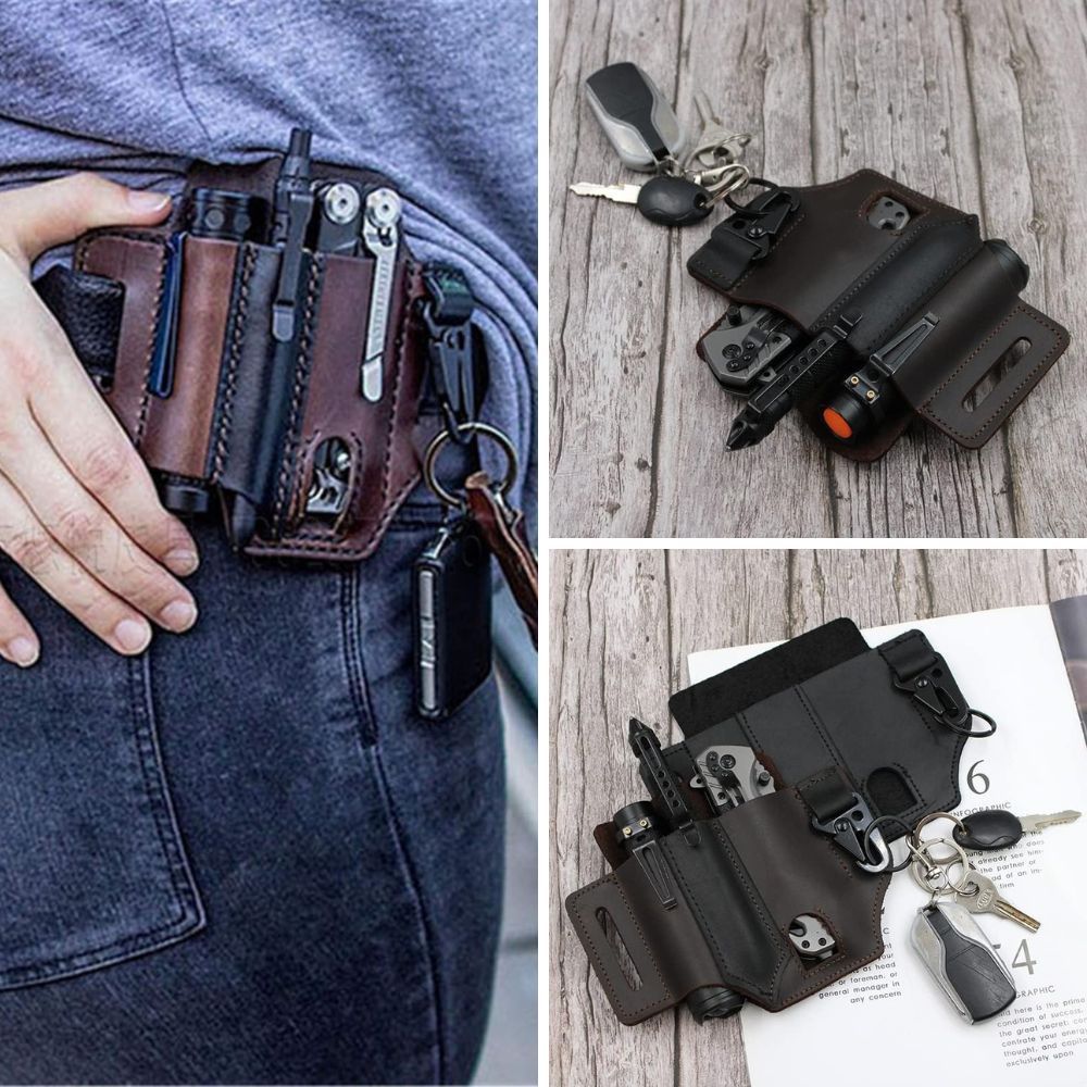 Handmade with 100% natural leather, this sheath is a testament to craftsmanship and attention to detail. It's not merely a practical tool; it's an embodiment of style and sophistication. With ample pockets designed for utmost utility and a leather sheen that grows radiant over time, it’s poised to become the crown jewel of your EDC ensemble. Whether you're off to a board meeting or a weekend adventure, it ensures your essentials are always in order and within arm's reach.