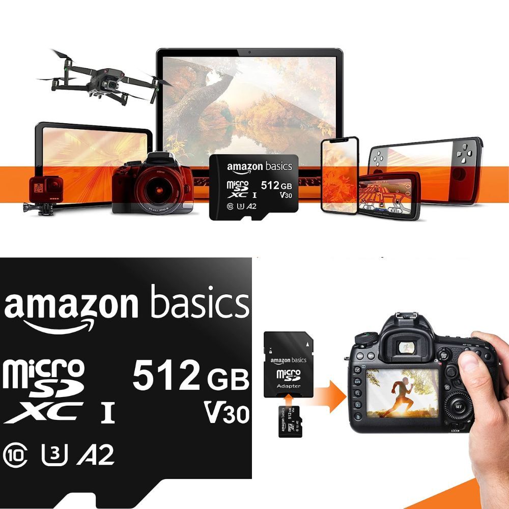 This Amazon Basics Micro SDXC Memory Card isn't just compatible; it's an inclusive marvel. It sidles up to smartphones, tablets, cameras, GoPros, laptops, drones, Nintendo Switches, and more. A chameleon of storage solutions, it comes with an SD adapter, always ready for its next transformation.