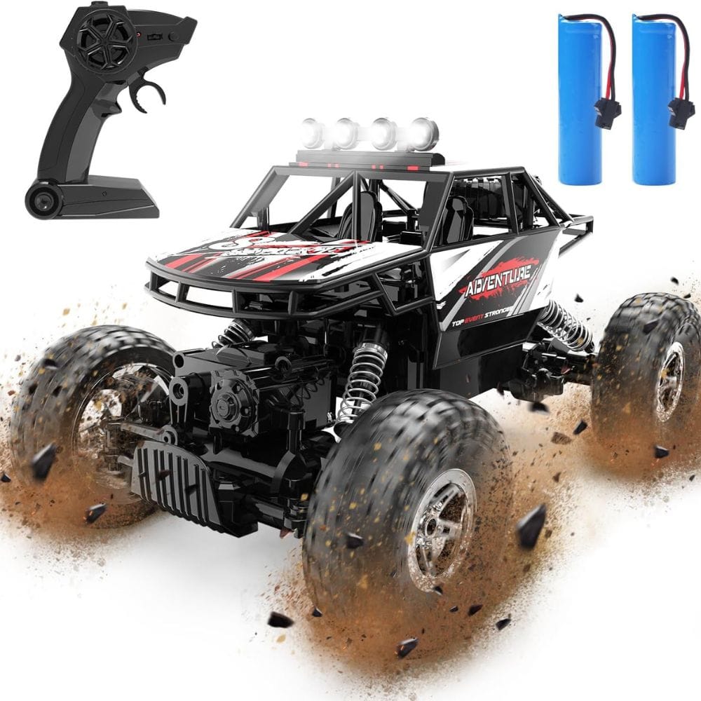 Equipped with two 3.7V rechargeable batteries, this RC truck offers up to 90 minutes of runtime, allowing you to enjoy extended off-road fun without frequent recharging. The 2.4GHz remote control system prevents signal interference, so you can race with friends without losing control. Plus, the LED headlights ensure visibility even during night-time drives.