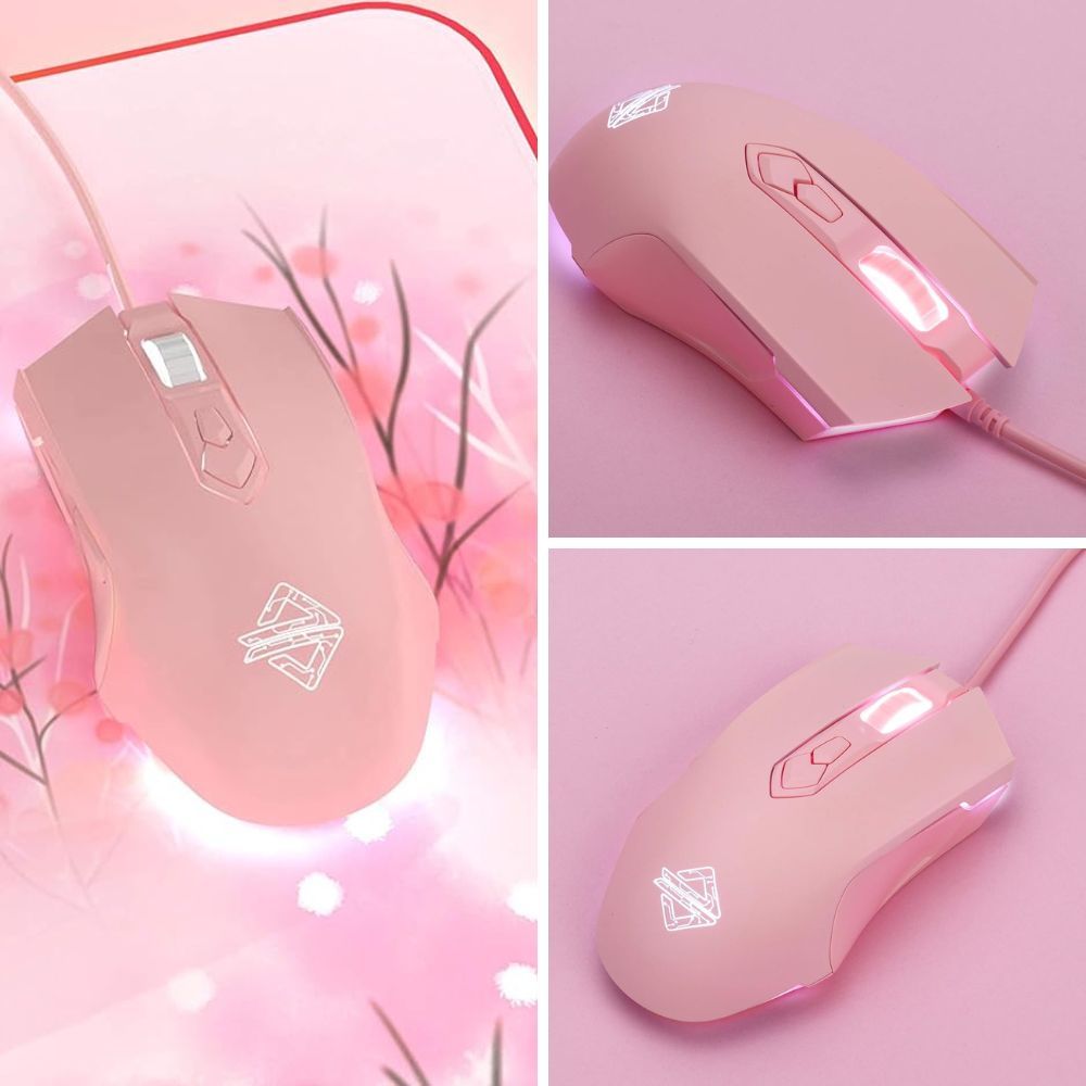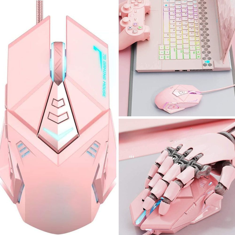 This fashionable pink wired gaming mouse also comes with an ergonomic design that fits comfortably in your hand.