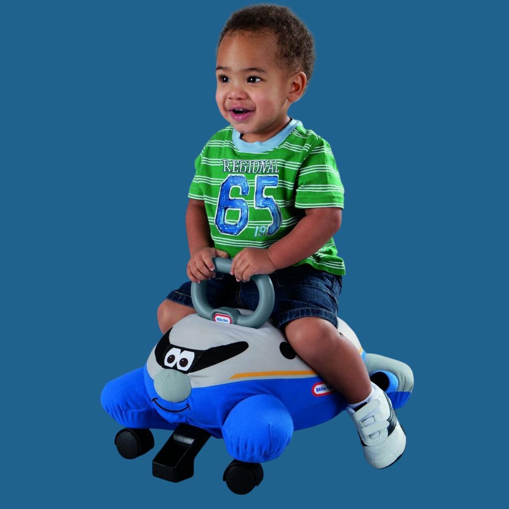 Soar through living-room skies with this winged wonder! Every twist and twirl is but a gentle glide, thanks to the plane's propelling caster wheels. And if your lofty laps leave you longing for a cuddle, this aerial ally's plushy exterior easily detaches to double as a dreamy companion. Grab onto the trusty handle, ensuring your flight remains unflustered. Ready to ride the wind, little aviator?