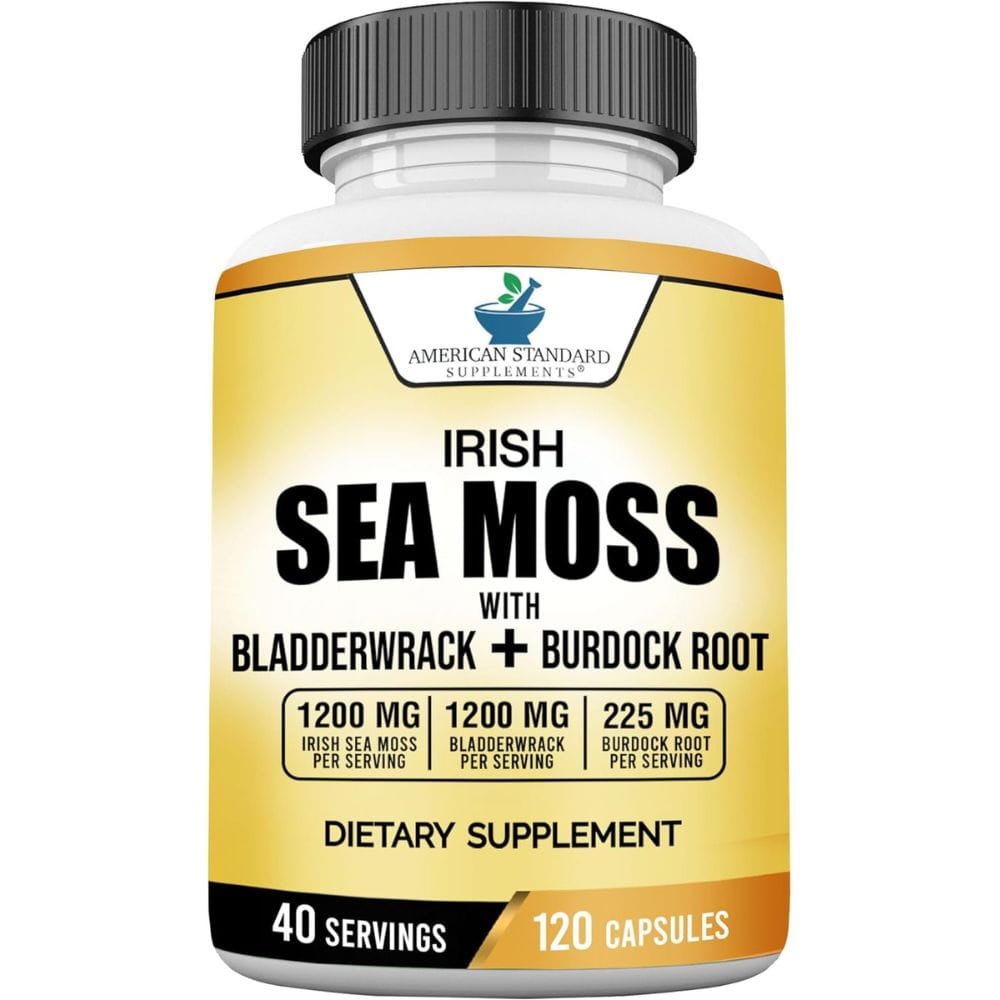 Let's get down to brass tacks with American Standard Supplements Irish Sea Moss. No frills, just thrills. This bottle packs a punch with 1200mg of Sea Moss and its sidekicks, Bladderwrack and Burdock Root. It's like the nutritional equivalent of a 40-day marathon for your body—without the actual running. Vegan? Check. Non-GMO and gluten-free? Double-check. It's as if Mother Nature herself blessed these capsules, all while being under the watchful eye of the FDA in a facility so clean you could eat off the floor (but please, stick to the capsules). If you're looking for the dietary equivalent of a superhero cape, look no further. American Standard Supplements has your back (and your front, and your insides too).
