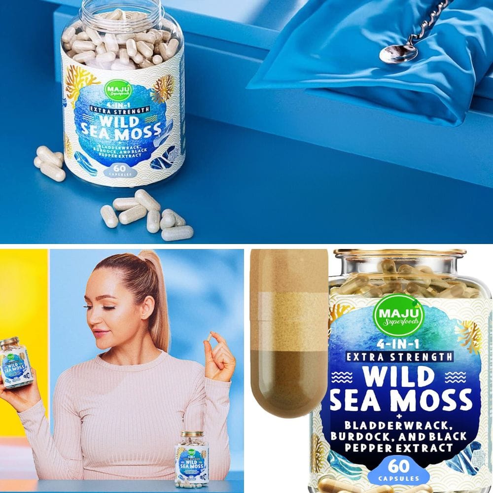 Last but not least, MAJU's 4-in-1 Organic Sea Moss Capsules are the nutritional equivalent of finding a four-leaf clover under a rainbow. This isn't just sea moss; it's a magic carpet ride for your health, with Irish Sea Moss, Bladderwrack, Burdock Root, and a pinch of Black Pepper for that extra zing. It's like having your own personal health wizard in a bottle, casting spells to support your thyroid and immune system. Sourced from the wild Canadian waters, these capsules are as pure as a snowflake on a mountaintop. Whether you're looking to detox, boost your mood, or simply give your body the royal treatment it deserves, MAJU promises a blend so potent, you might just feel like you can conquer the world—or at least, your to-do list.