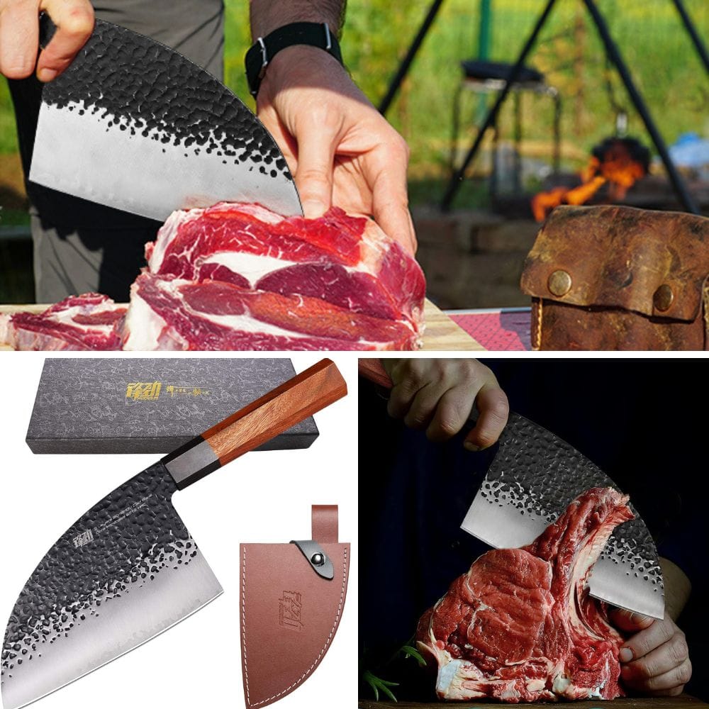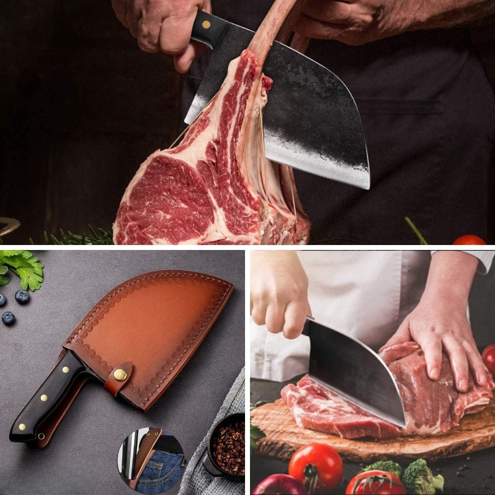 However, what sets Serbian chef knives apart is their hand forged design, which provides a level of precision and versatility not always found in typical meat cleavers. Whether you're chopping vegetables, mincing herbs, or slicing meat, the sharp knife edge ensures efficiency and precision. And with the added protection of a leather sheath, these knives are not only functional but also safely portable and easy to store on a knife rack when not in use.