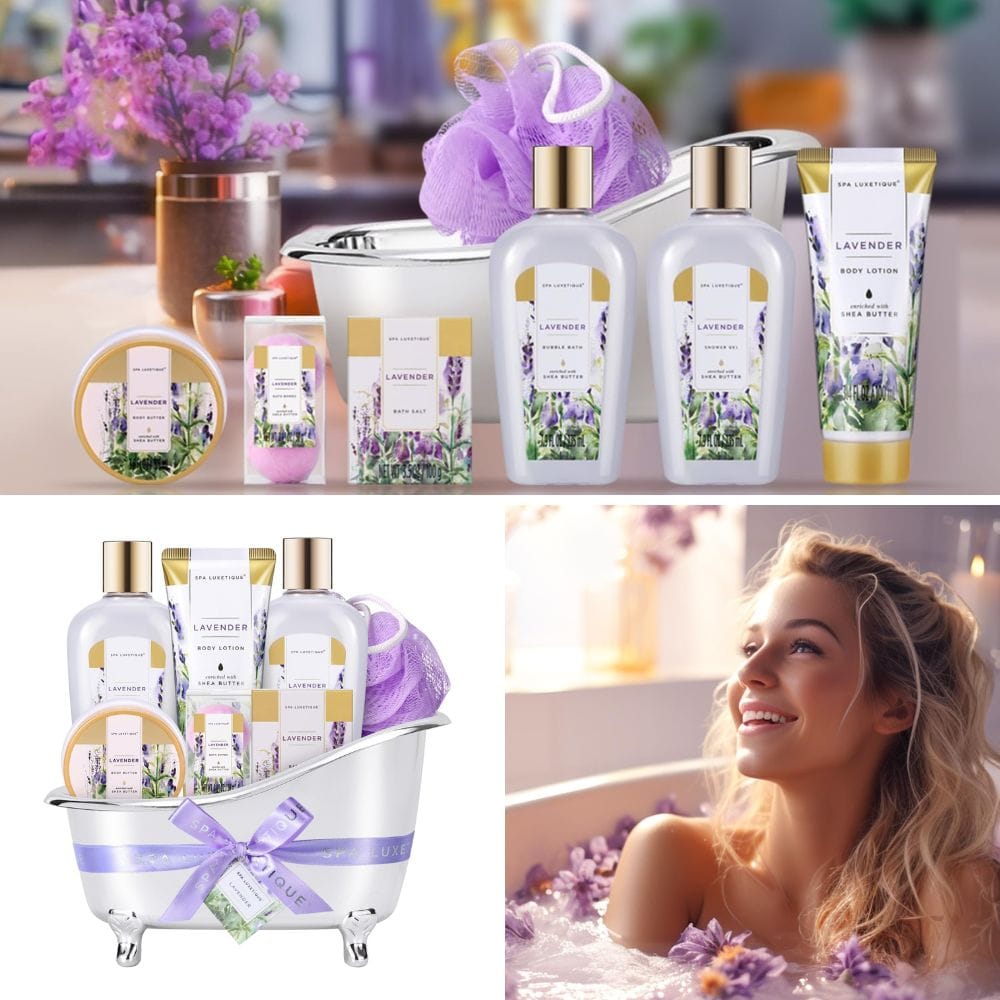 Dive into a dream spun from the heart of lavender fields, where calm is a fragrance and relaxation is a gift. The Spa Luxetique Gift Baskets are more than just a set; they're a gateway to moments of sublime peace, each product a thread woven into a tapestry of tranquility. Bath bombs fizz with the promise of bliss, shower gel lathers into a frothy escape, and lotions whisper secrets of soft, nourished skin. This collection is a love letter to the art of unwinding, a lavender-laced invitation to breathe deep and let go. Whether as a beacon of self-love or a gesture of care for someone special, these baskets serve as a reminder of the gentle power of taking time to oneself.